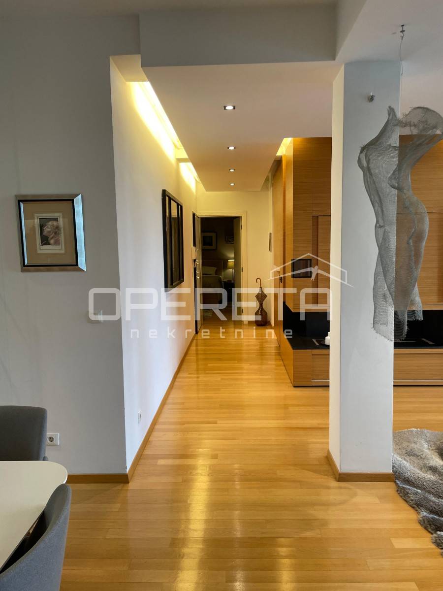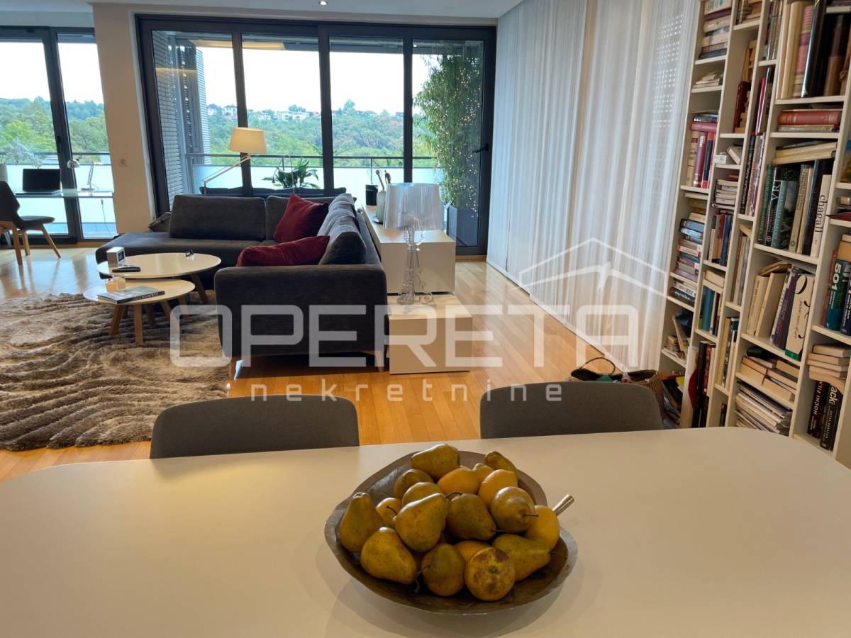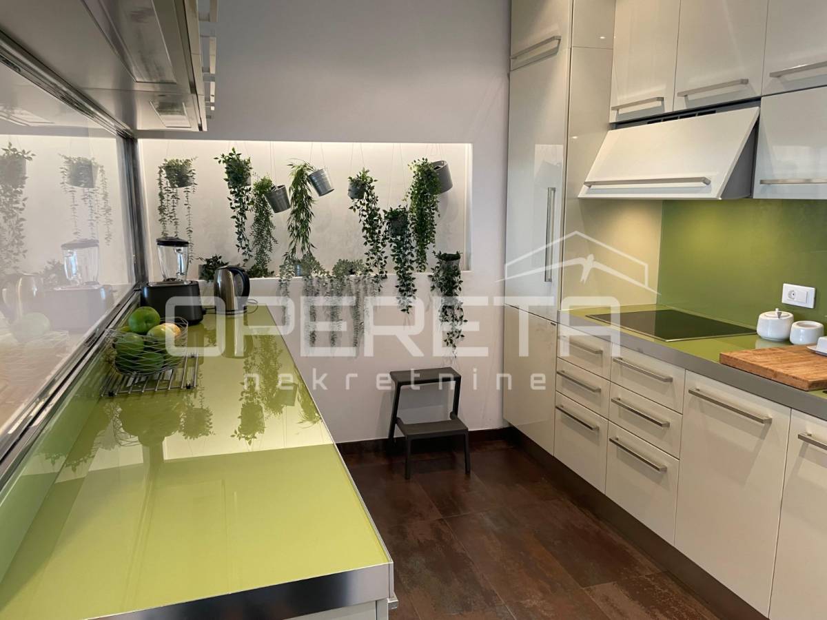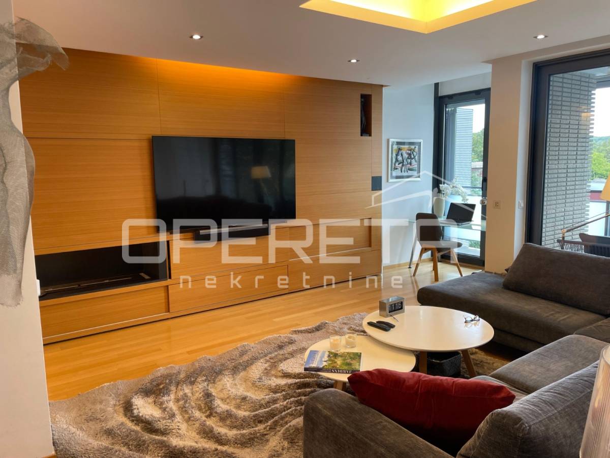 Prekrasno uređen i kompletno namješten trosoban stan površine 122 m2 na 2. katu novije gradnje s liftom. Sastoji se od ulaznog hodnika, prostranog dnevnog boravka s blagovaonicom, kuhinje, spavaće sobe s vlastitom kupaonicom (kada i tuš kabina), spavaće sobe, kupaonice s tušem, vešeraja te loggie (17,25 m2).Stanu pripadaju2 parkirna mjesta ispred zgrade.