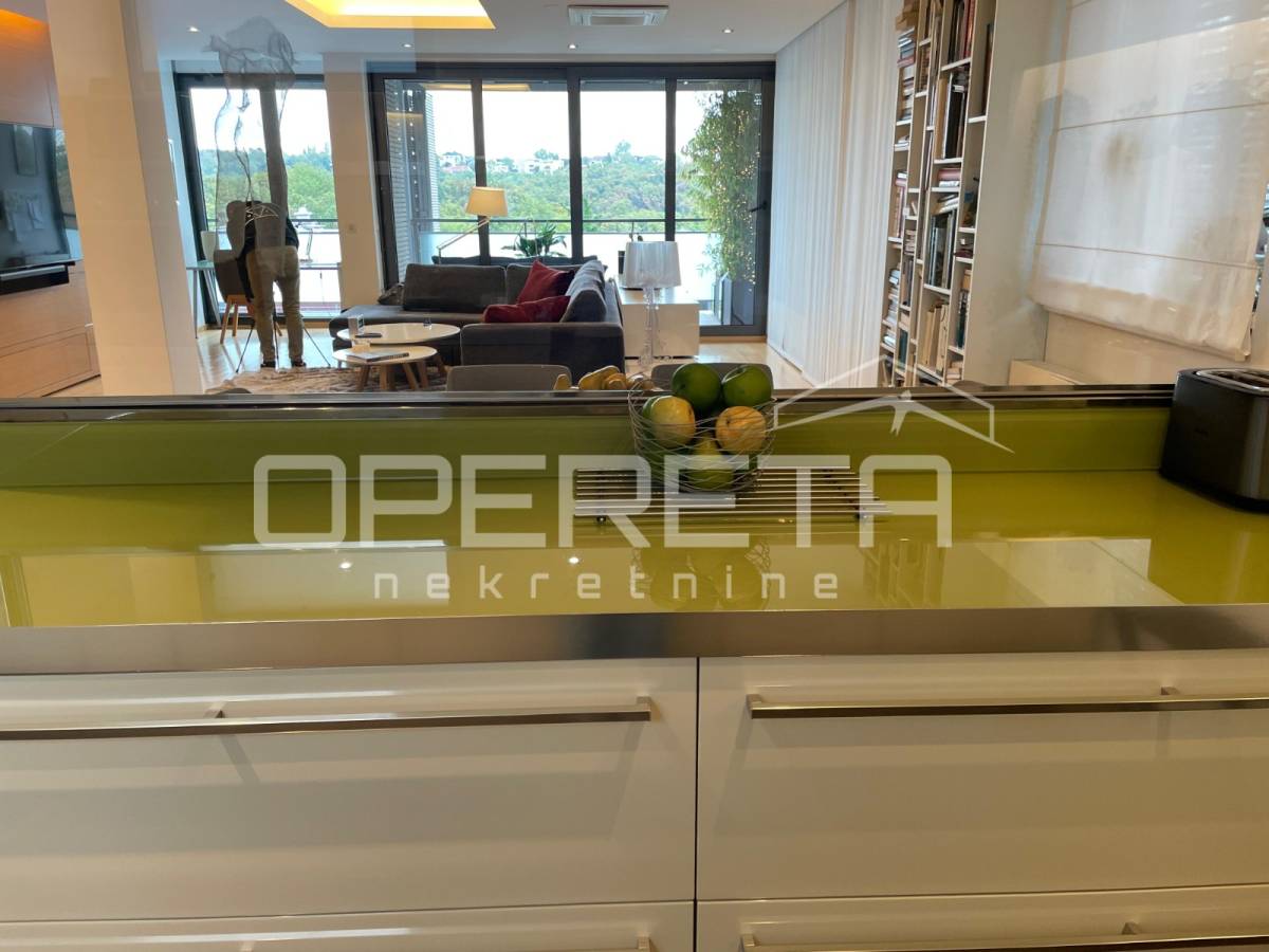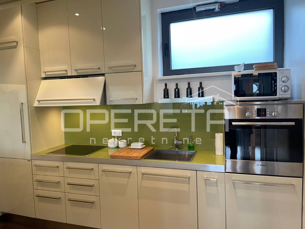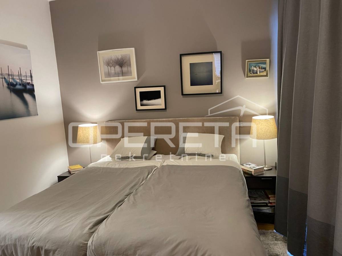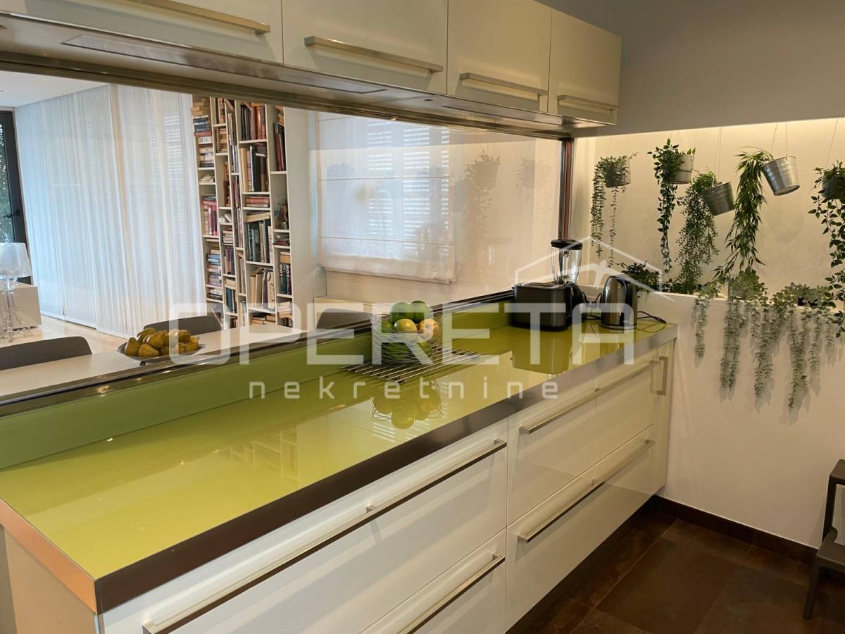 Prekrasno uređen i kompletno namješten trosoban stan površine 122 m2 na 2. katu novije gradnje s liftom. Sastoji se od ulaznog hodnika, prostranog dnevnog boravka s blagovaonicom, kuhinje, spavaće sobe s vlastitom kupaonicom (kada i tuš kabina), spavaće sobe, kupaonice s tušem, vešeraja te loggie (17,25 m2).Stanu pripadaju2 parkirna mjesta ispred zgrade.
