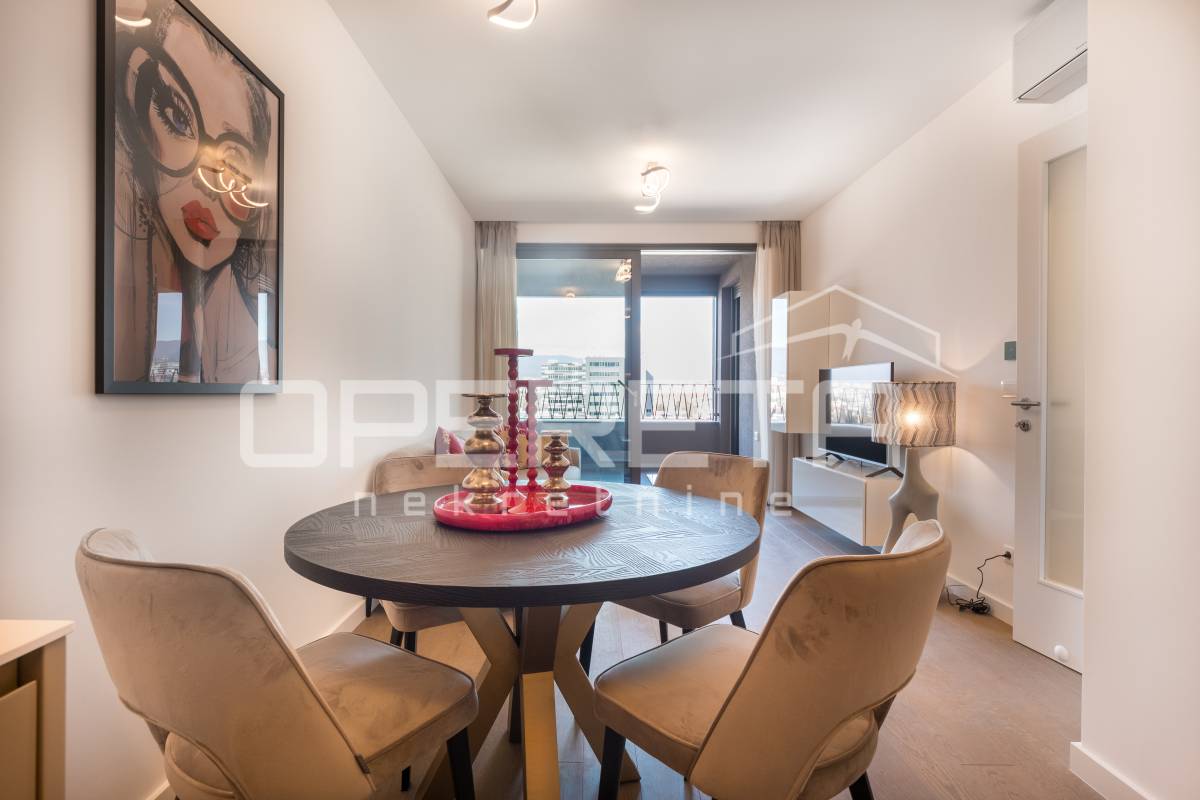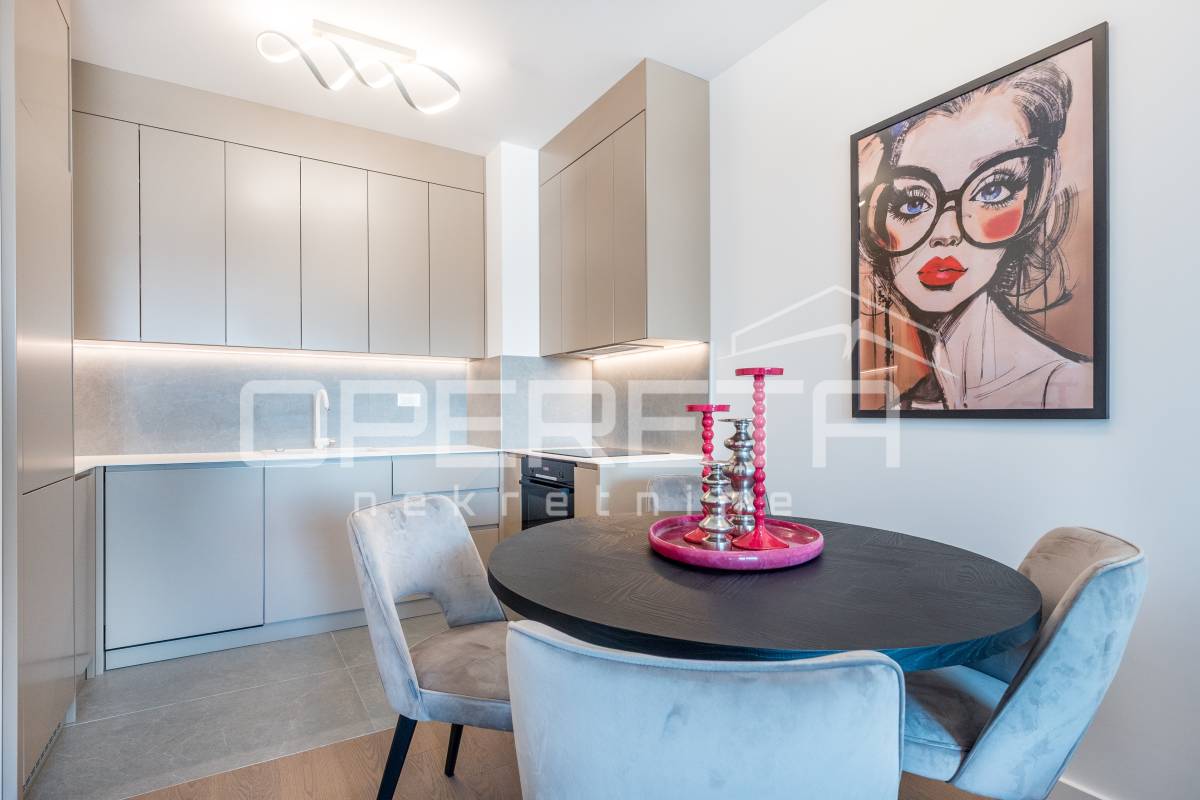 Stan je kompletno namješten, kuhinja je opremljena sa Bosch uređajima. U stanu je podno grijanje, električne rolete, klima u svakoj prostoriji, master prekidač.