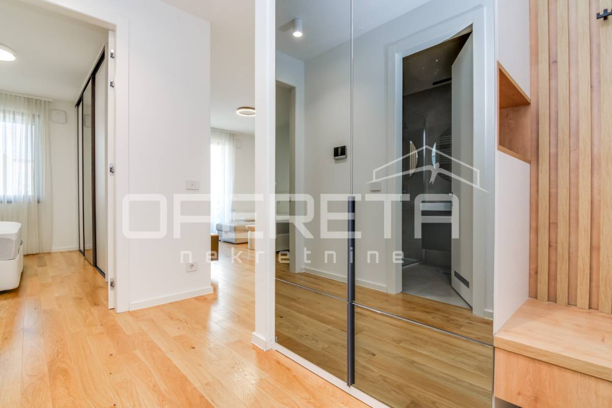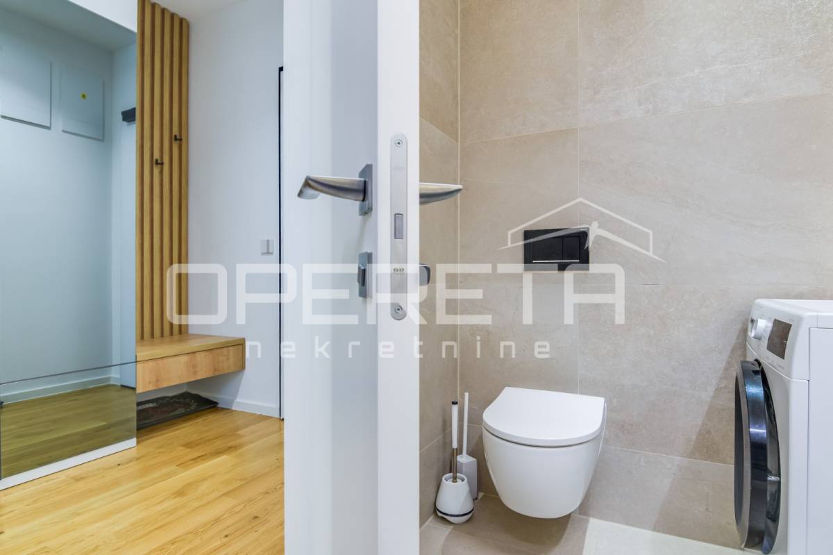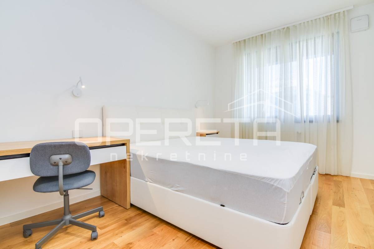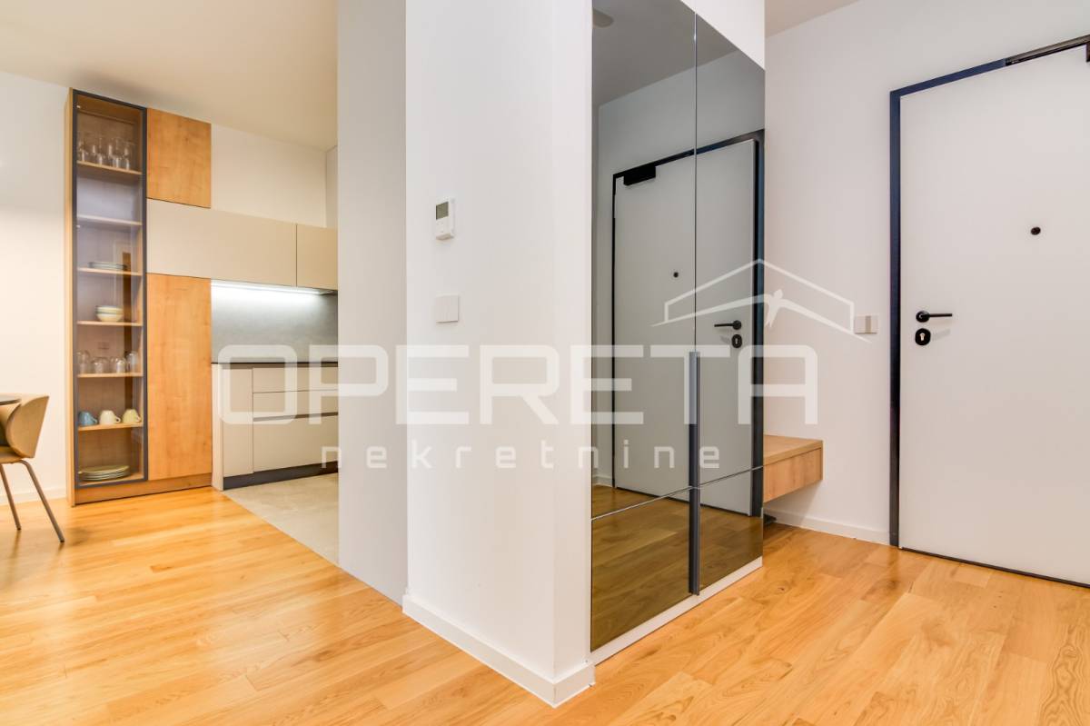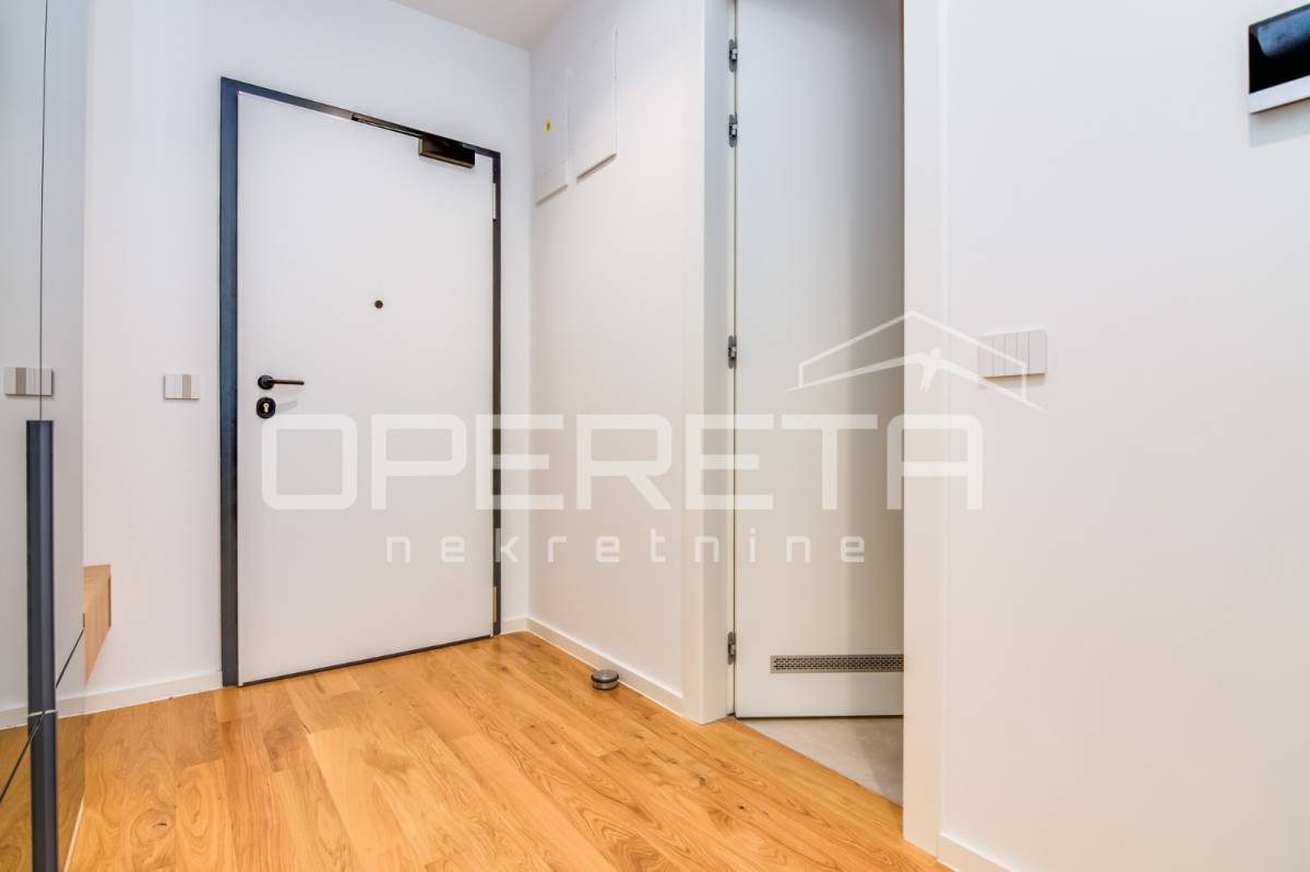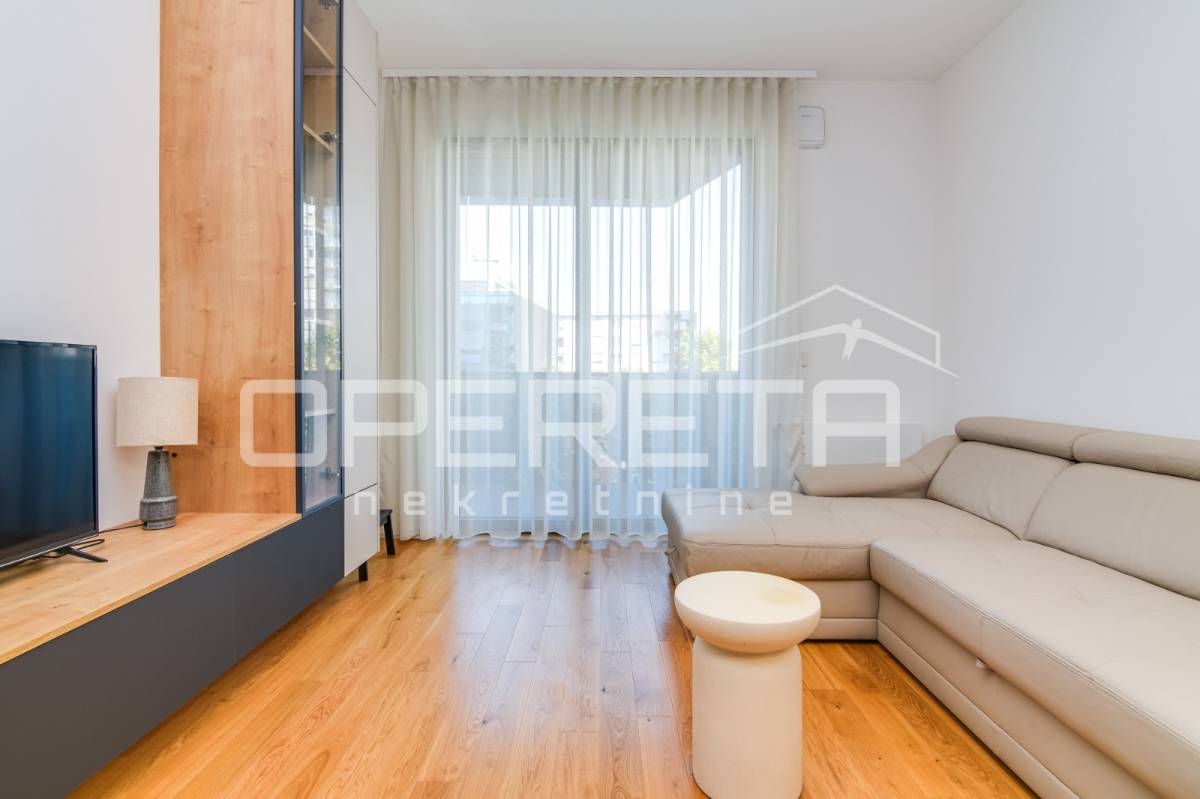 Iznajmljuje se prekrasan te luksuzno i moderno namješten i kompletno opremljen 2s stan od 56m2 na IV katu u izuzetno kvalitetnoj novogradnji (2023.g.) Stan se sastoji od: ulaznog prostora, open space dnevnog boravka sa blagovaonom i kuhinjom, prostrane spavaće sobe, kupaone s wc-om i natkrivene terase. Visina stropa iznosi 2,80m.