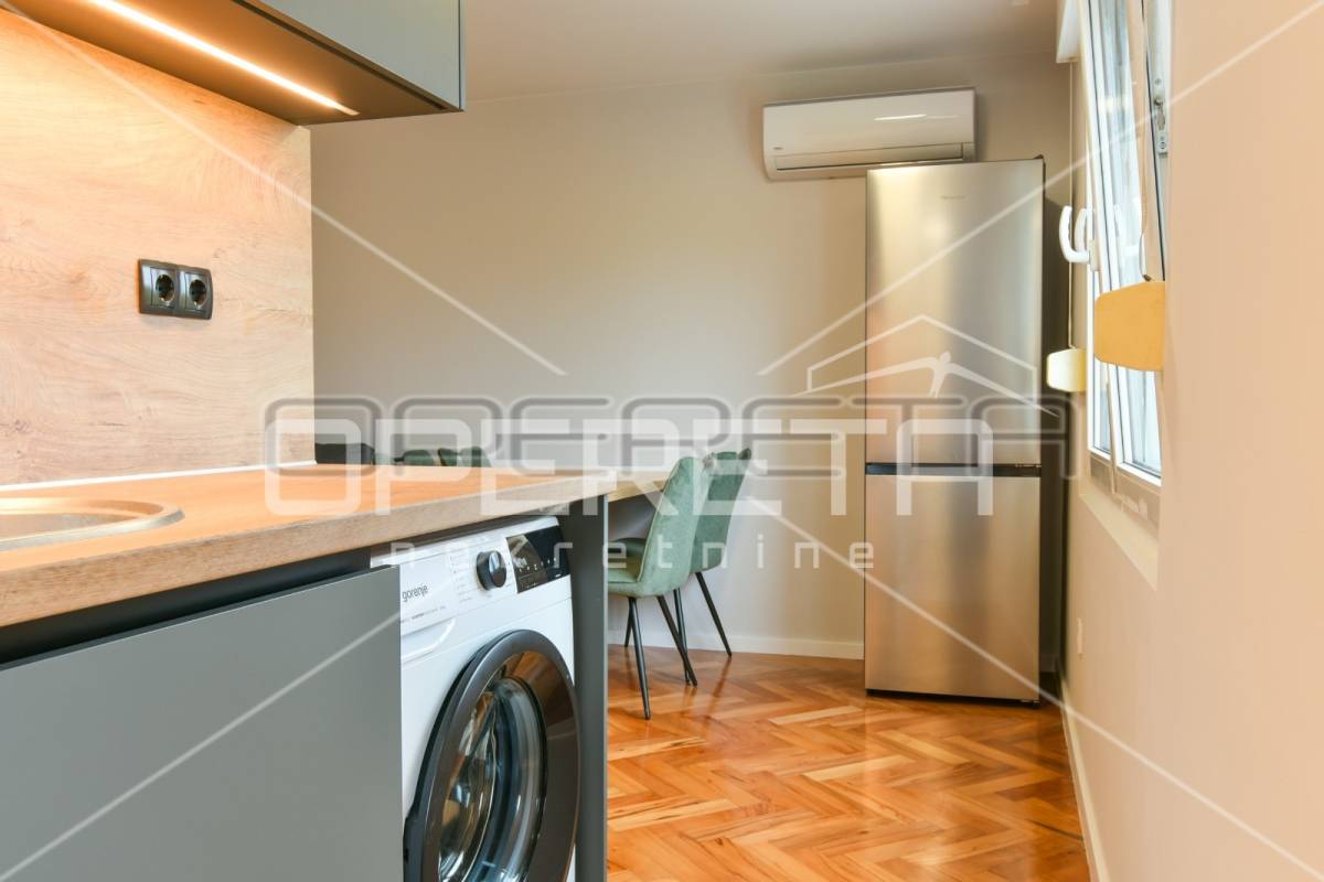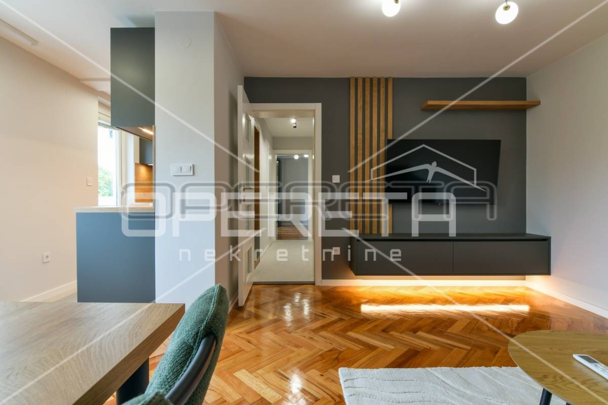 Iznajmljuje se kompletno uređeni 2S stan u održavanoj zgradi na 3. katu zgrade bez lifta. Stan je kompletno adaptiran i novouređen te je ovo prvi najam. Nalazi se 3 min pješice od tramvajske i autobusne stanice, ali i svih ostalih sadržaja. Stanu pripadaju 2 spremišta. Parking ispred zgrade je besplatan.