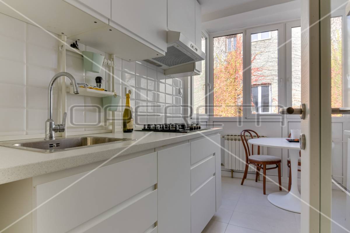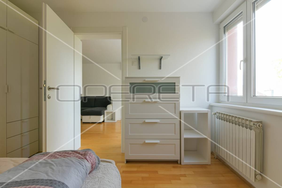 NAJAM STANA, ZAGREB, ROCKEFELLEROVA, MEDVEŠČAK, 45 m2. Iznajmljuje se 2-soban stan na 2. katu kvalitetne zgrade izgrađene 1963. godine, adaptiran 2019. godine. Sastoji se od hodnika, dnevnog boravka, spavaće sobe, kuhinje, kupaonice i sanitarnog čvora. Parking je na ulici, besplatan. Stan je kompletno namješten, opremljen s perilicom i sušilicom rublja, perilicom suđa, klimom. Mirna ulica u elitnom kvartu, a nadomak grada. U neposrednoj blizini je park sa šetnicom. Mirno okruženje, blizina svih sadržaja za život (autobus, tramvaj, dom zdravlja, dućan, ljekarna, osnovna i srednja škola i sl.). Idealno za samce ili par.