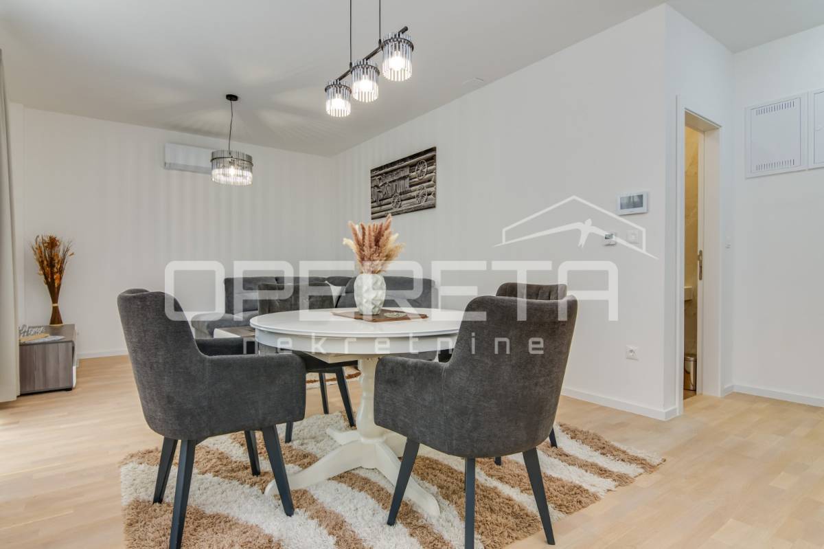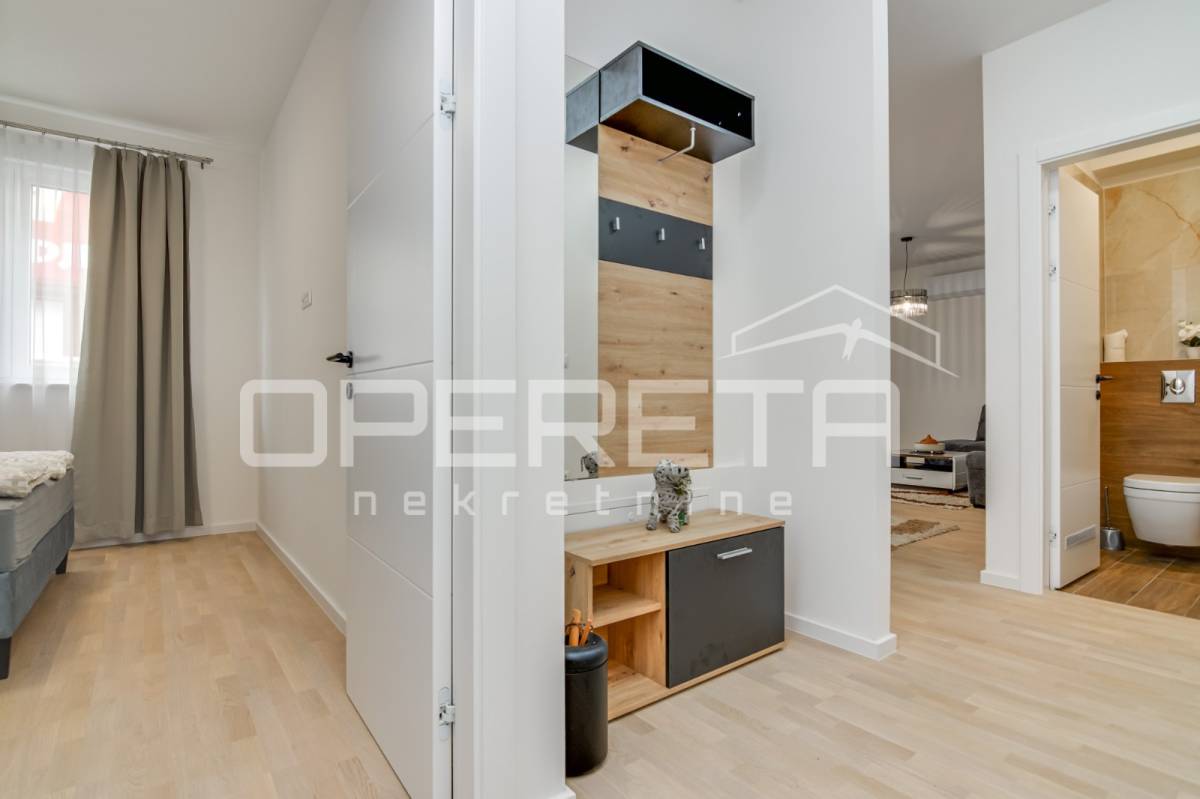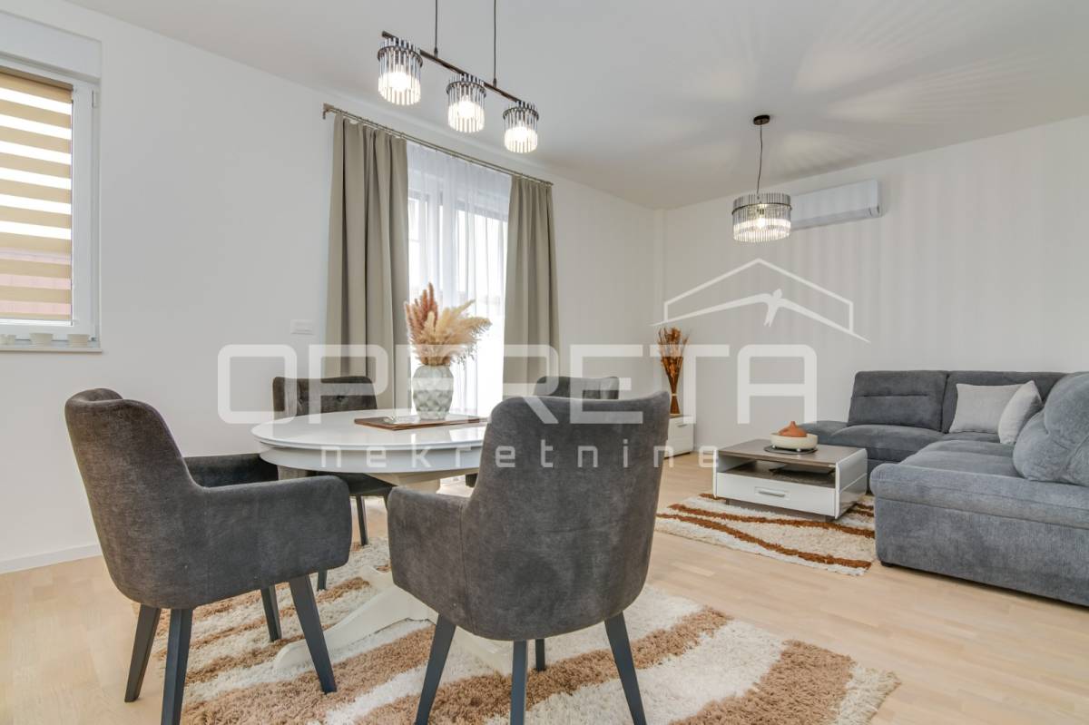 Iznajmljuje se 3soban, novonamješten stan u prizemlju manje stambene zgrade s tri stana izgrađene 2025. godine, na mirnoj lokaciji u Sesvetama.