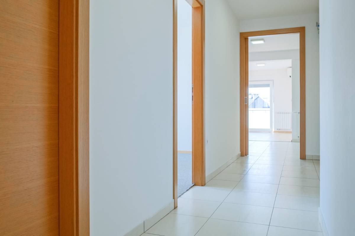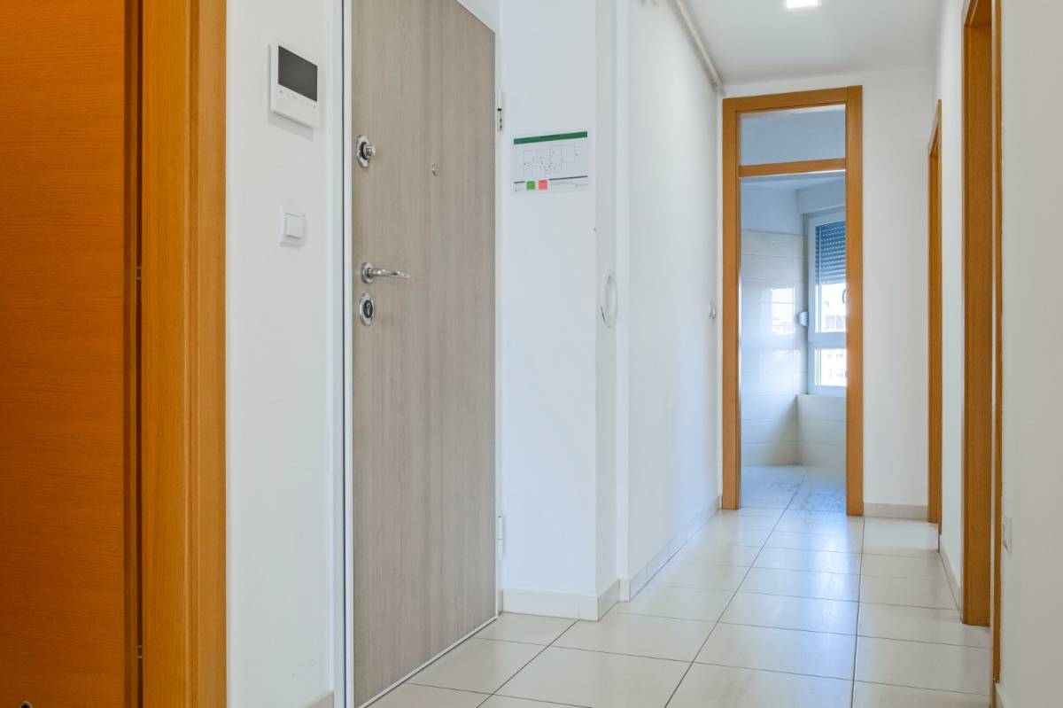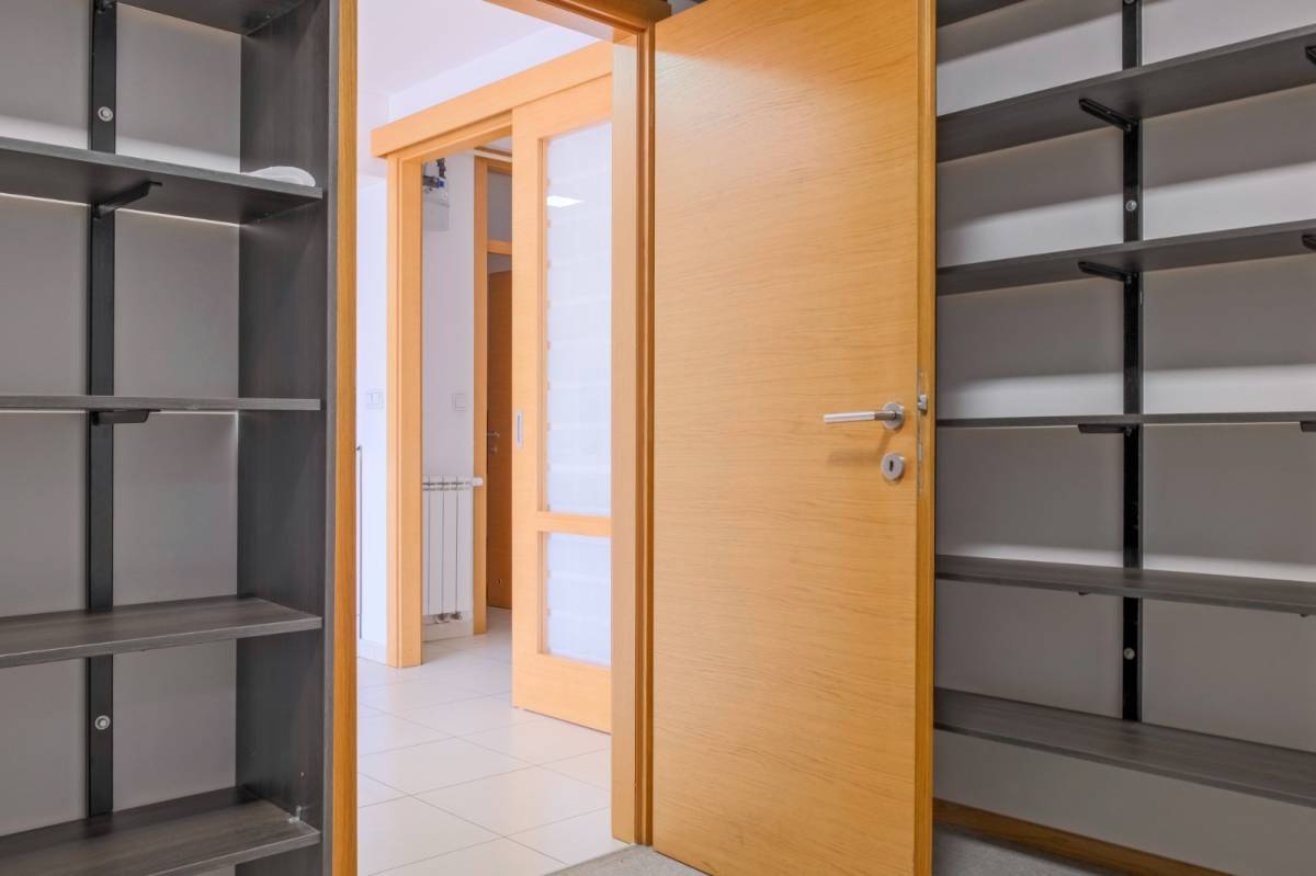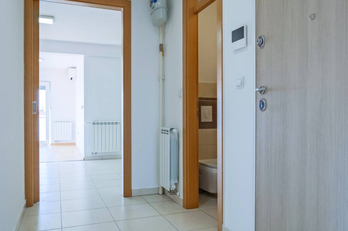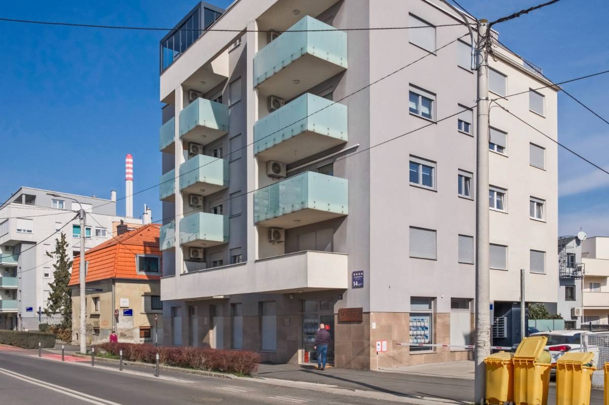 Potpuno novi stan na četvrtom katu s liftom, polunamješten. Sastoji se od tri spavaće sobe, kupaonice s wc-om (tuš kabina), odvojenog toaleta, kuhinje s blagovaonicom, dnevnog boravka s izlazom na balkon (po koeficijentu 3,90m2). Sveukupno zatvorene podne površine 84,16m2. Stanu pripada i spremištem 1,69m2 te garažno parkirno mjesto od 12,55m2 (6,28m2).