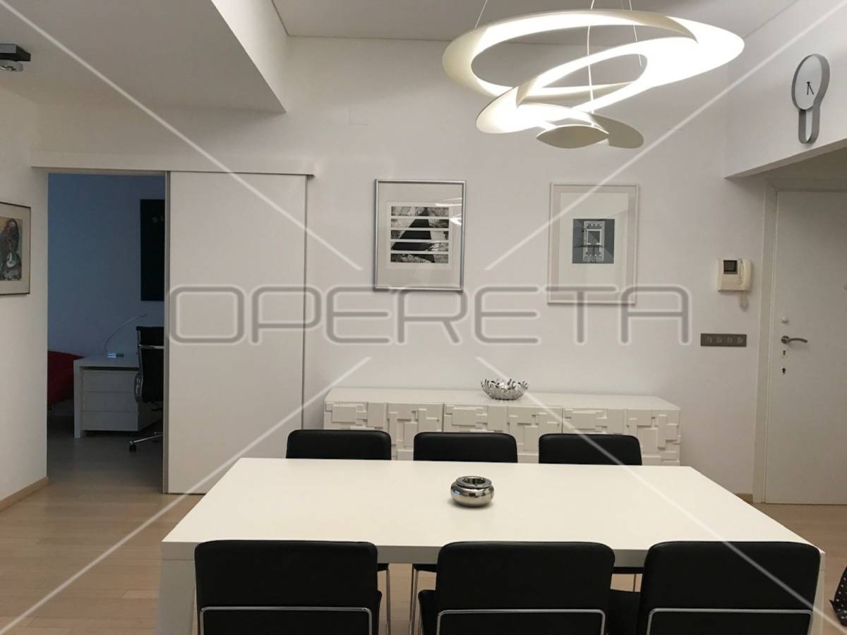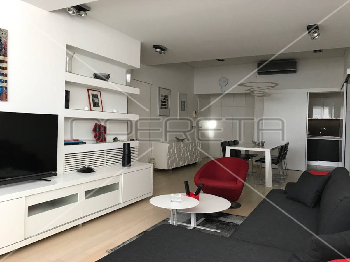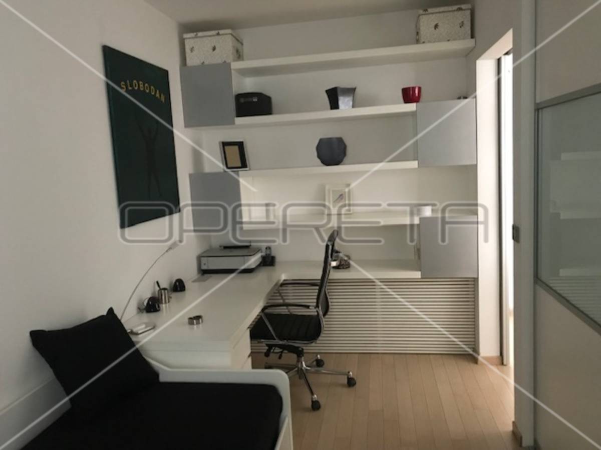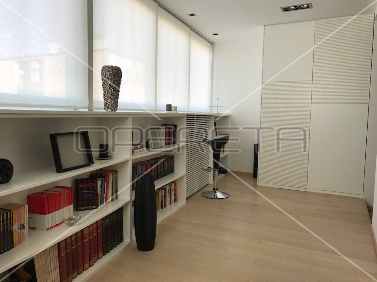NAJAM STANA, TREŠNJEVKA, Ogrizovićeva ulica. Fenomenalan stan na odličnoj lokaciji, VMD-ova zgrada, vrhunski opremljen i dizajnerski uređen. Sastoji se od otvorenog dnevnog boravka u komunikaciji sa blagovaonicom, kuhinje, radne/garderobne sobe, biblioteke, spavaće sobe, odvojenog wc-a, te kupaonice sa wc-om. Iznad stana (a sa ulazom kroz predsoblje) se nalazi spremište za odlaganje stvari. Dvostrana orijentacija, obilje svjetla, komfor, parking - vlastita garaža plus mogućnost parkiranja u dvorištu zgrade pod rampom. Preporuka za samca ili par.