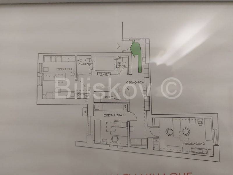 Poslovni prostor sastoji od 3 prostorije, ulaznog hodnika, 2 WC-a i male kuhinje.