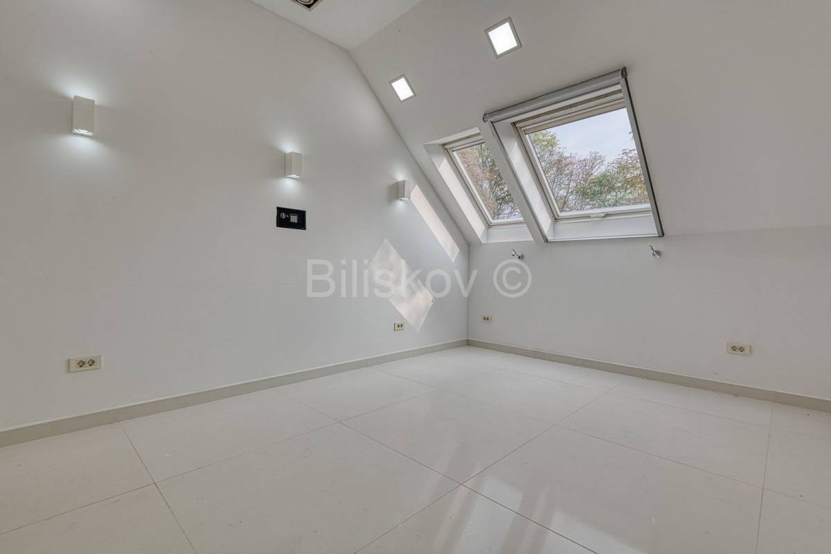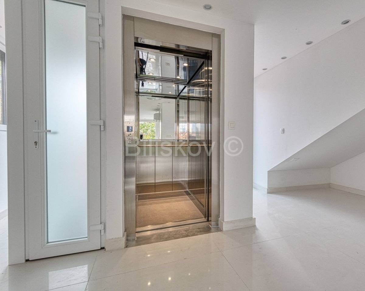 U prizemlju se nalazi dnevni boravak, toalet, predsoblje, i natkrivena terasa, na 1. katu se nalaze tri spavaće sobe, dvije kupaonice, i garderobe, na zadnjoj etaži se nalazi veliki dnevni boravak, kupaonica i natkrivena terasa s koje se pruža prekrasan pogled na Tuškanac i Dubravkin put.