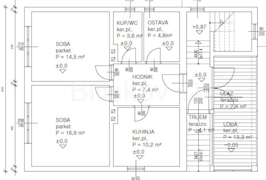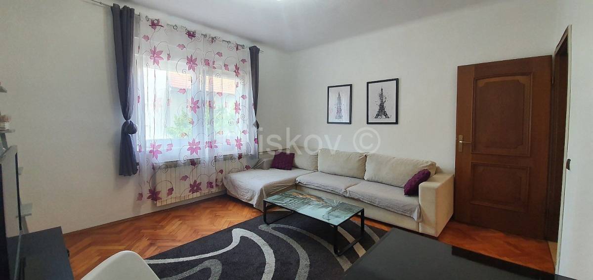 Iznajmljuje se lijepo uređen i ugodan stan površine 80 m2 (stambeni dio 65 m2, loggia 15m2) u visokom prizemlju.