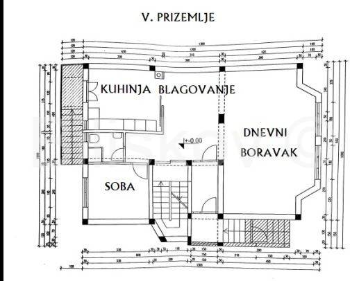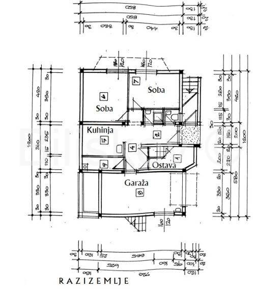 U Razizemlju je: garaža, kotlovnica, ostava, kuhinja, dvije kupaonice i dvije sobe. Ovaj prostor je idealan za ordinaciju, ured, teretanu i slično
