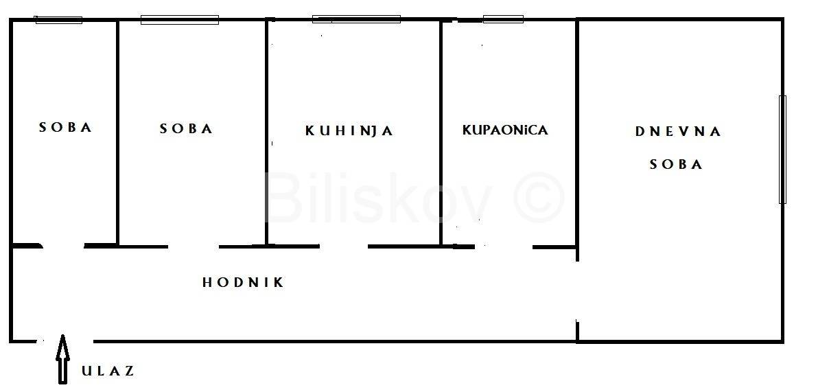 Stan se sastoji od dugog hodnika iz kojeg se ulazi u tri sobe, kuhinju i kupaonicu. Momentalno je stan u fazi namještanja namještajem i uređajima. Kupaonica je novouređena i uredna je. Stan ima zasebna brojila za struju i grijanje.