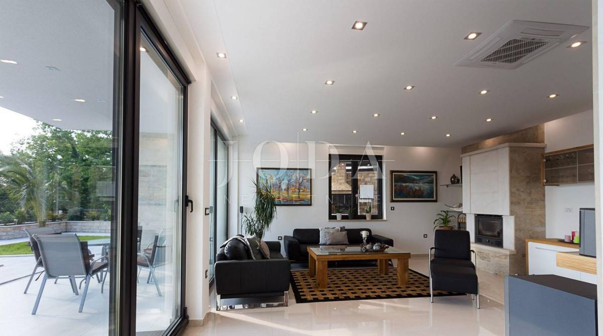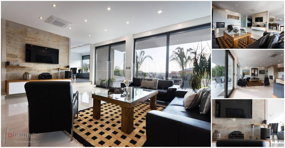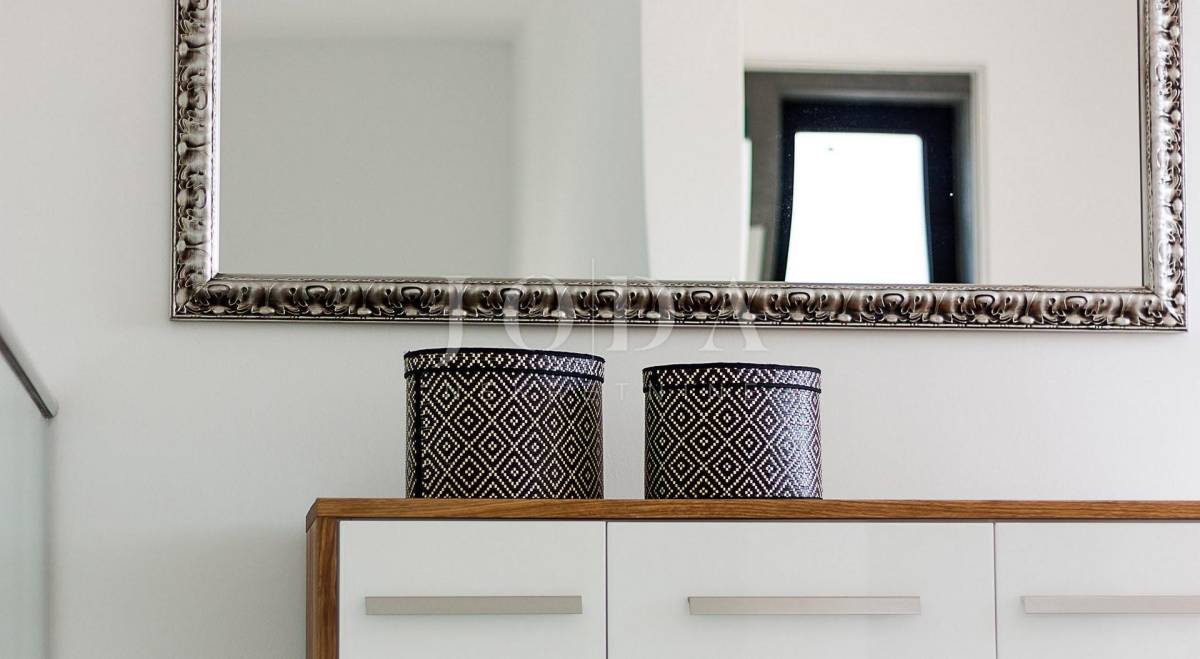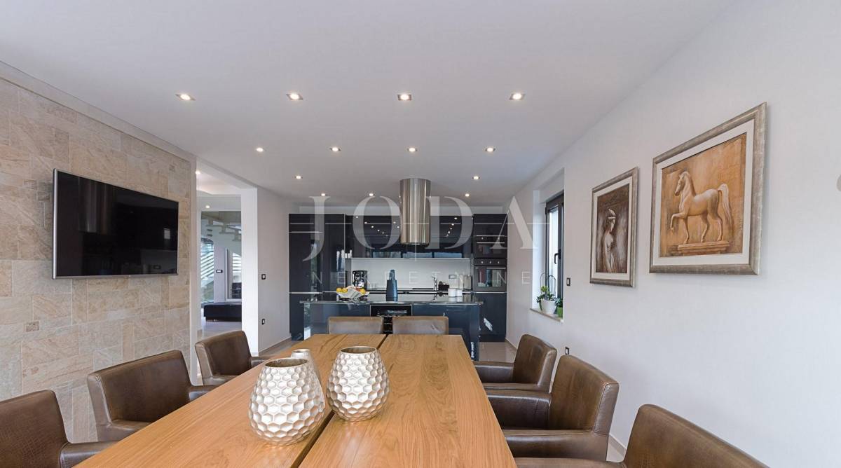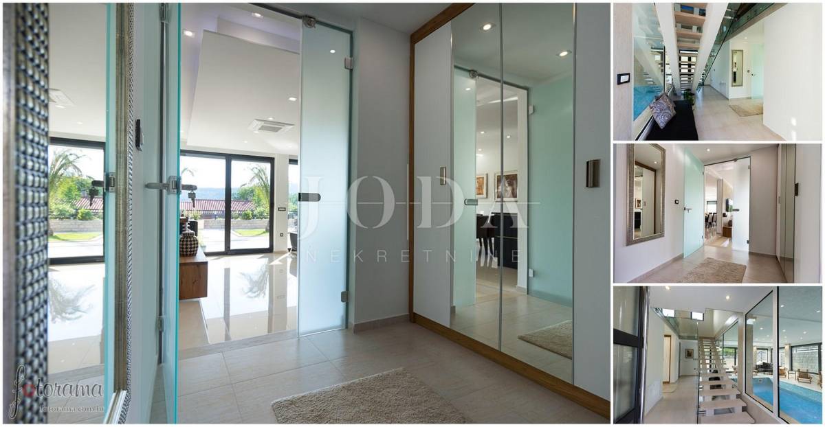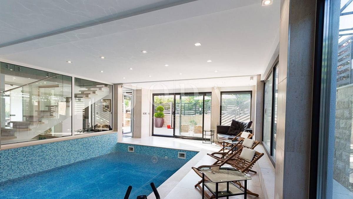 Prekrasna moderna vila na mirnoj lokaciji. Karakterizirana svojim jedinstvenim dizajnom, ova suvremena vila nudi nenadmašan stil i funkcionalnost. Villa se prostire na 350 m2 i sastoji se od prizemlja, prvog i drugog kata. Ima 3 spavaće sobe sa pripadajućim kupaonicama na prvom katu, a jednosoban stan na drugom katu. Prostrani dnevni boravak i vrhunski opremljena kuhinja s blagovaonicom nalazi se u prizemlju kuće. U prizemlju kuće nalazi se i unutarnji bazen i sauna.