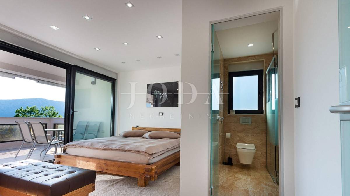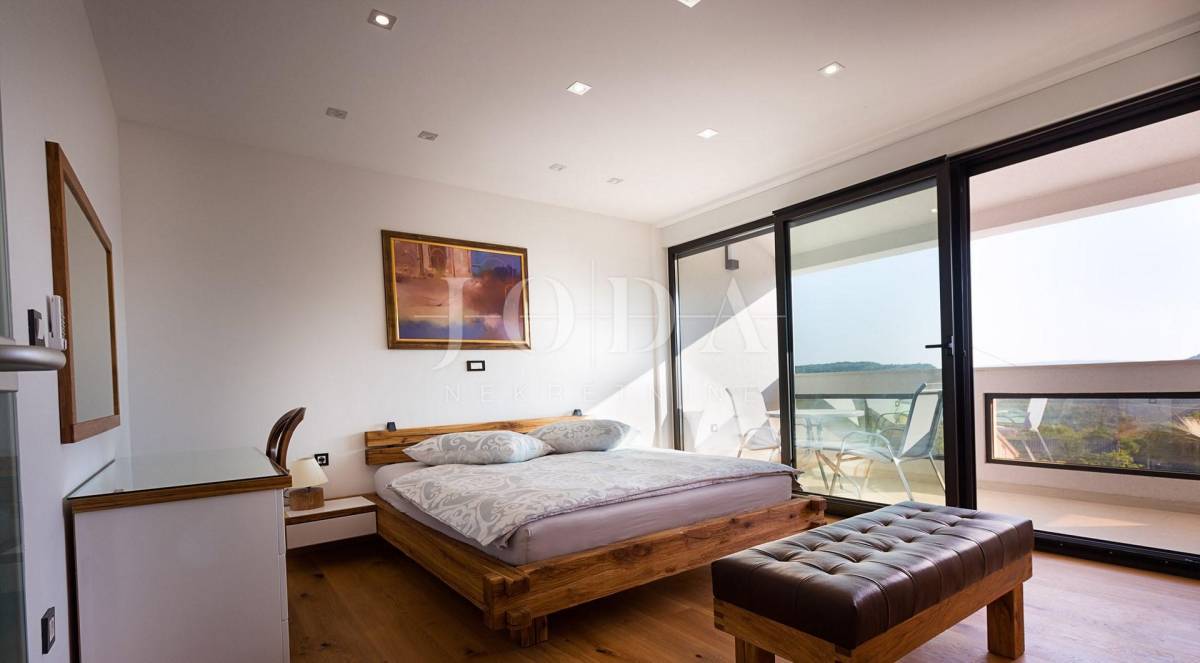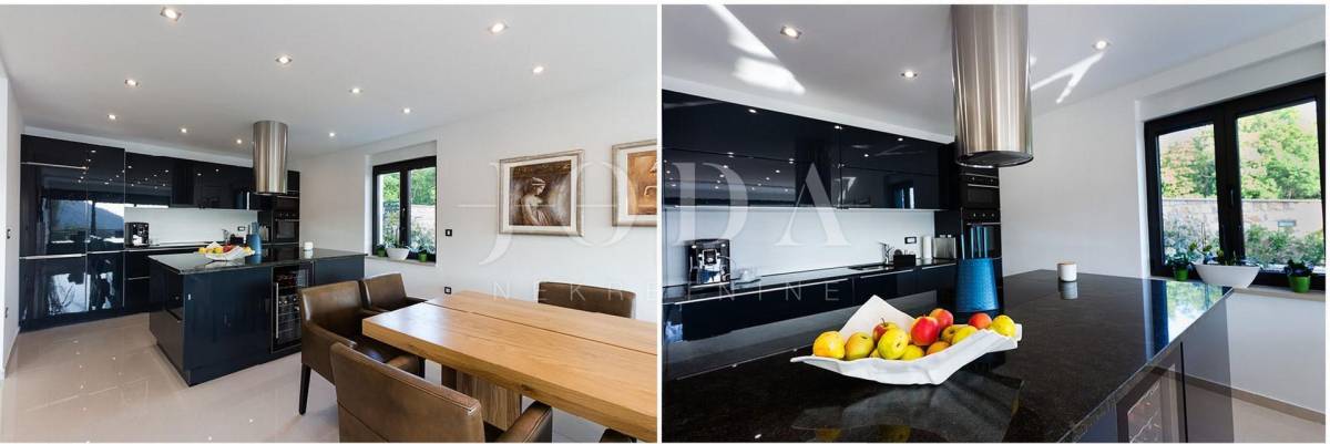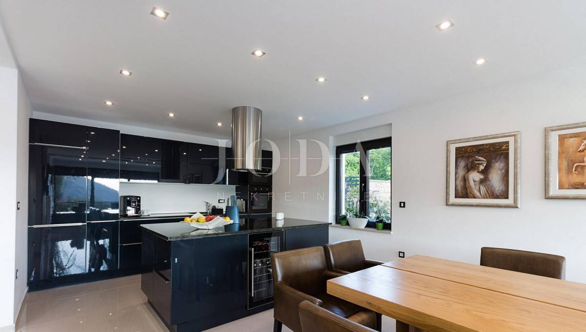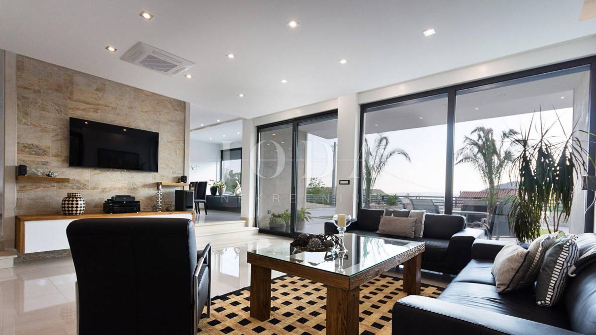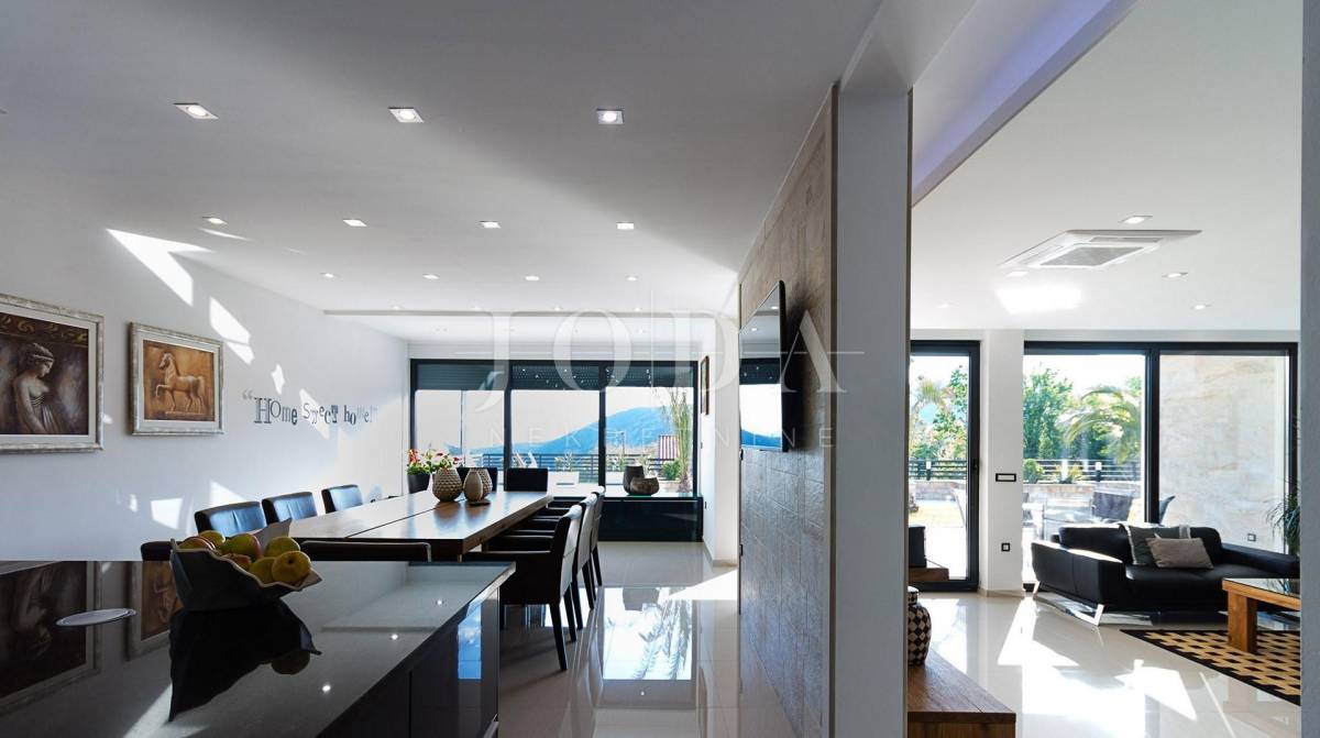 Prekrasna moderna vila na mirnoj lokaciji. Karakterizirana svojim jedinstvenim dizajnom, ova suvremena vila nudi nenadmašan stil i funkcionalnost. Villa se prostire na 350 m2 i sastoji se od prizemlja, prvog i drugog kata. Ima 3 spavaće sobe sa pripadajućim kupaonicama na prvom katu, a jednosoban stan na drugom katu. Prostrani dnevni boravak i vrhunski opremljena kuhinja s blagovaonicom nalazi se u prizemlju kuće. U prizemlju kuće nalazi se i unutarnji bazen i sauna.