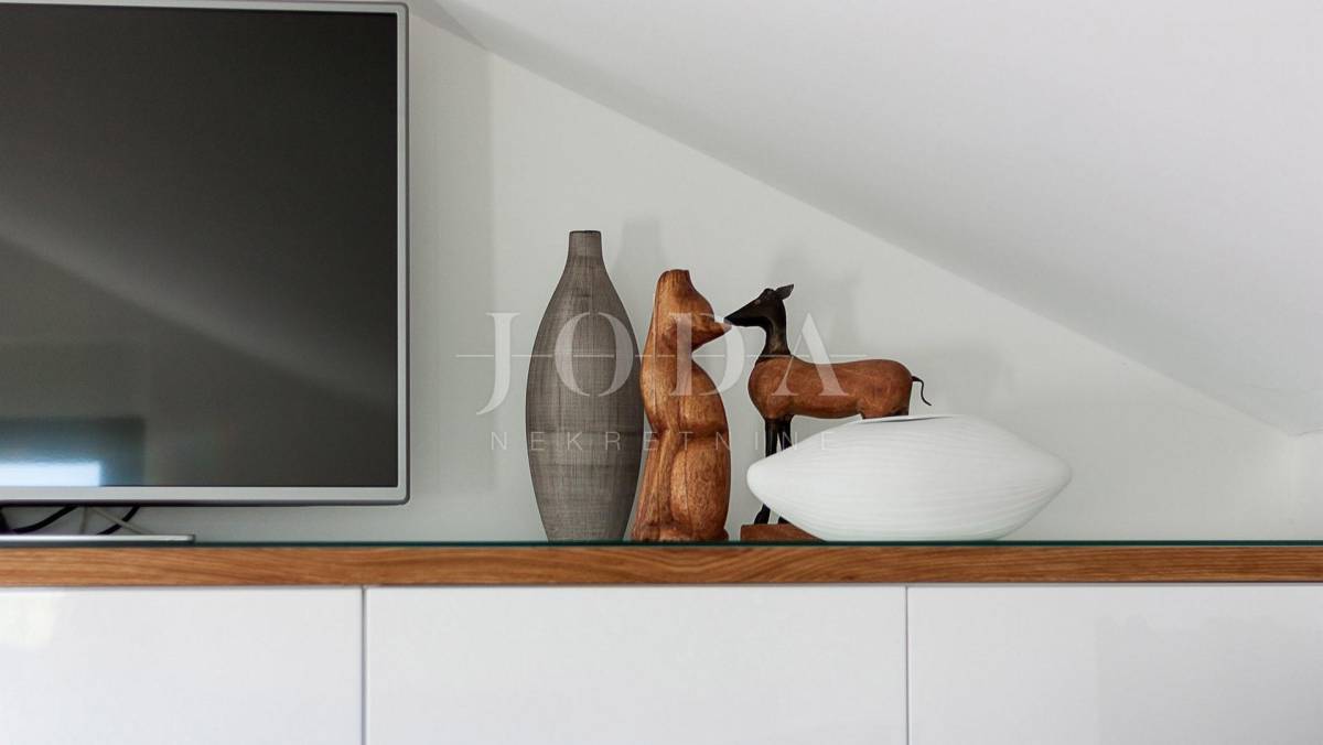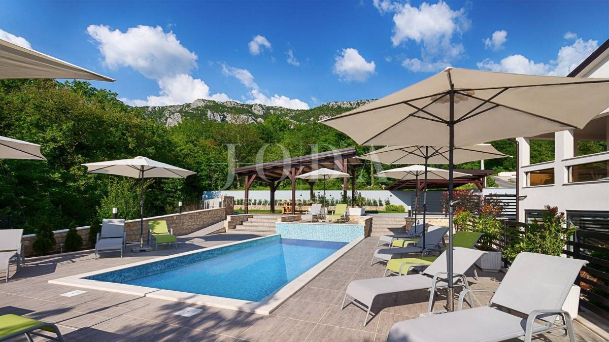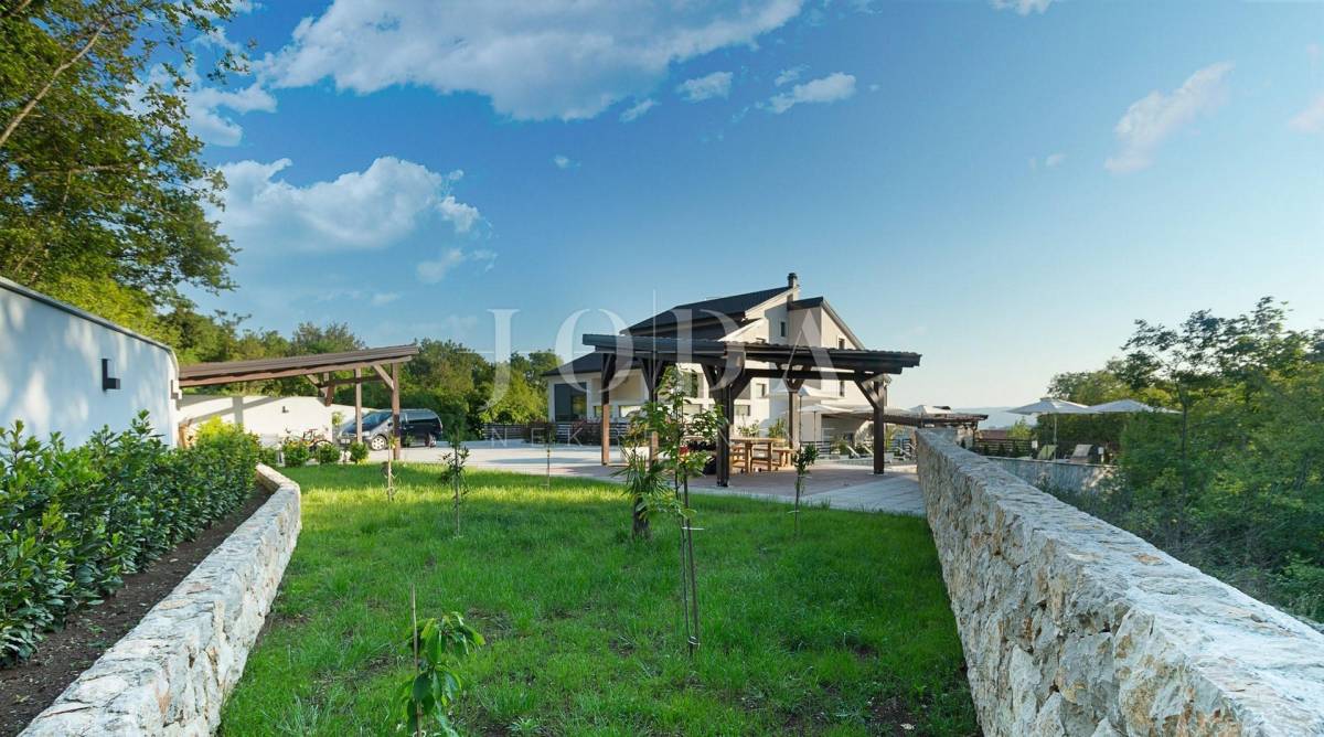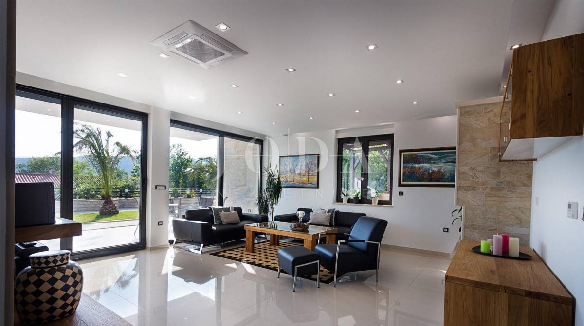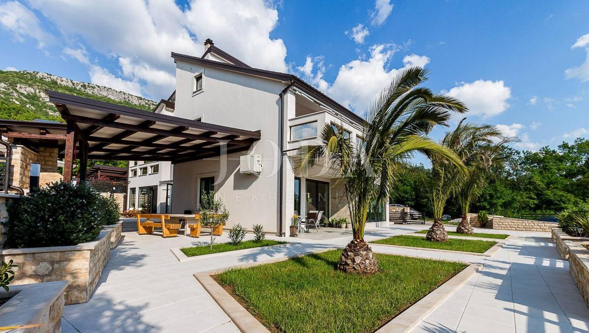 Prekrasna moderna vila na mirnoj lokaciji. Karakterizirana svojim jedinstvenim dizajnom, ova suvremena vila nudi nenadmašan stil i funkcionalnost. Villa se prostire na 350 m2 i sastoji se od prizemlja, prvog i drugog kata. Ima 3 spavaće sobe sa pripadajućim kupaonicama na prvom katu, a jednosoban stan na drugom katu. Prostrani dnevni boravak i vrhunski opremljena kuhinja s blagovaonicom nalazi se u prizemlju kuće. U prizemlju kuće nalazi se i unutarnji bazen i sauna.