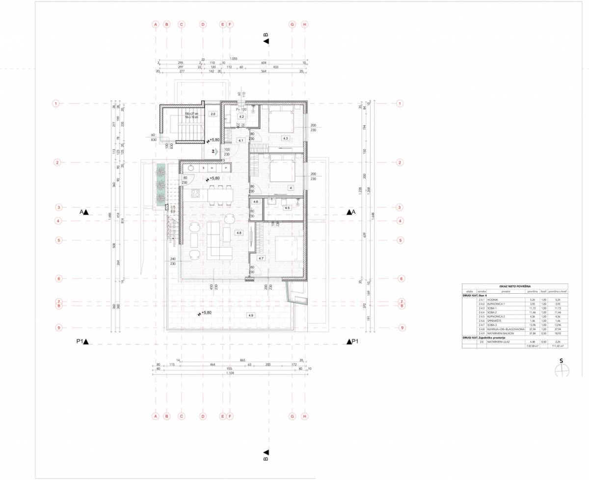 Apartman A4 prostire se preko cijelog drugog kata moderne betonske zgrade u Njivicama na otoku Krku, udaljene svega 450 metara od mora. Riječ je o ekskluzivnoj penthouse jedinici s privatnom krovnom terasom, bazenom i neometanim pogledom na more - idealno za one koji traže visoki standard života u luksuznom ambijentu.