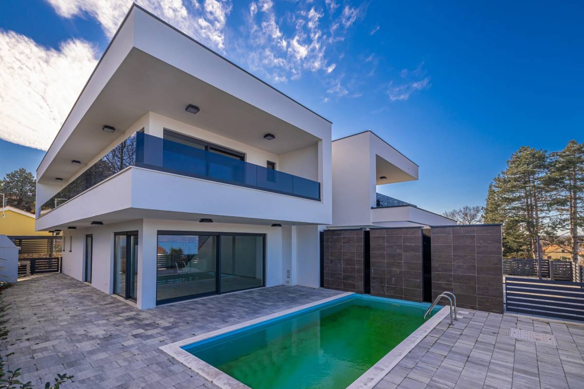 Ova vila ističe se vrhunskim materijalima i tehnologijama: podne obloge od luksuzne keramike, podno grijanje za dodatnu udobnost, multisplit klimatizacija svih prostorija, visokokvalitetna ALU stolarija s električnim roletama te protuprovalna vrata. Fasadna izolacija osigurava energetsku učinkovitost, a privatnost i sigurnost dodatno upotpunjuju dva parkirna mjesta u sklopu dvorišta.