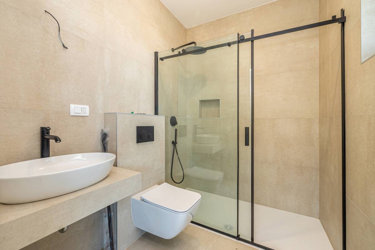 Na katu se nalaze četiri prostrane spavaće sobe, od kojih dvije imaju vlastite garderobe, dok su tri moderne kupaonice opremljene vrhunskim sanitarijama. Natkriveni balkon nudi predivan, otvoren pogled na more, stvarajući savršeno mjesto za jutarnju kavu ili opuštanje u večernjim satima.