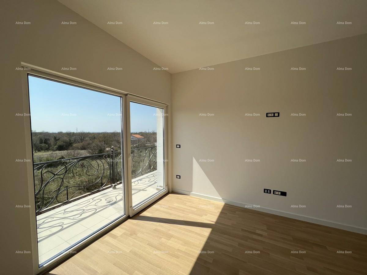Kat kuće: tri spavaće sobe. Jedna velika spavaća ima svoje kupatilo i garderober. Ostale dvije sobe dijele jedno kupatilo. Zasebna još jedna soba - dječija. Terasa sa pogledom na more.