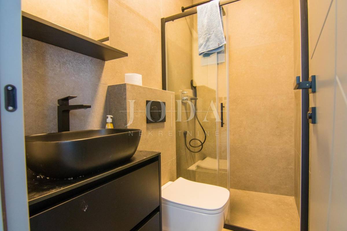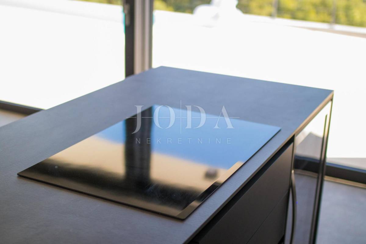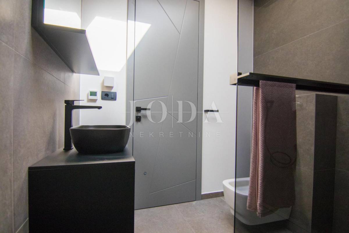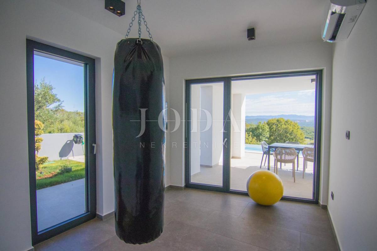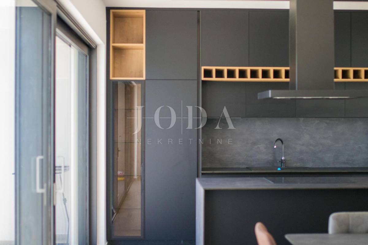 Kuća ukupne stambene površine 180 m² proteže se na prizemlje i kat. U prizemlju se nalaze garaža površine 21,70 m², prostrani dnevni boravak s kuhinjom i blagovaonicom, spremište s perilicom i sušilicom rublja, hodnik, kupaonica te prostorija za vježbanje (teretana).