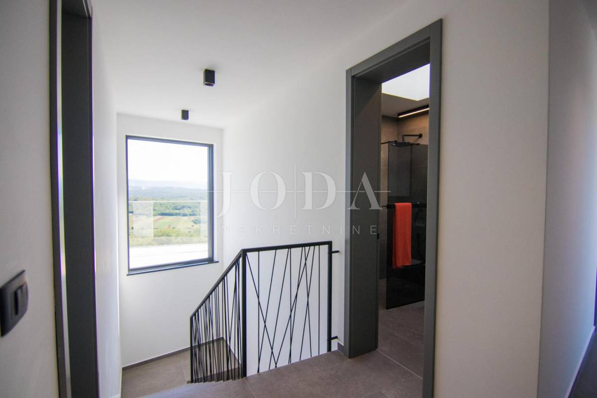 Na katu se nalaze četiri spavaće sobe, četiri kupaonice i hodnik sa stepeništem. Tri spavaće sobe imaju izlaz na zajednički balkon s kojeg se pruža prekrasan pogled na maslinike i more u daljini.
