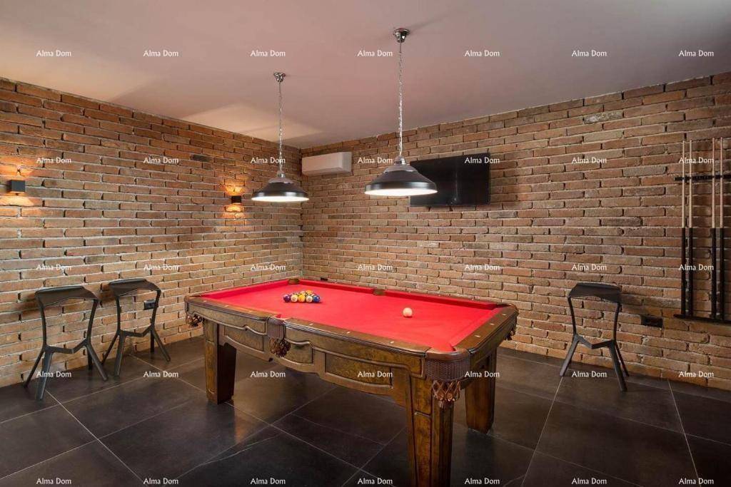 Luksuzna nekretnina sa teniskim terenom, bazenom i pogledom na more .Nalazi se u mirnom gradiću u blizini obale i turističkih atrakcija. Ova lijepa kuća nalazi se na velikom zemljištu od 3.800 m2. Prostor za kućno kino, soba za biljar, ostava i kotlovnica nalaze se u podrumu vile. Tu su i prostorije za kotlovnice i spremišta. U prizemlju se nalazi veliki dnevni boravak iz kojeg se izlazi na prekrasnu terasu i vrt uređen u mediteranskom stilu u kojem se nalazi veliki grijani bazen sa sunčalištem, jacuzzijem i saunom. Tu je i kuhinja s blagovaonicom te sve spavaće sobe imaju svoje vlastito kupatilo.