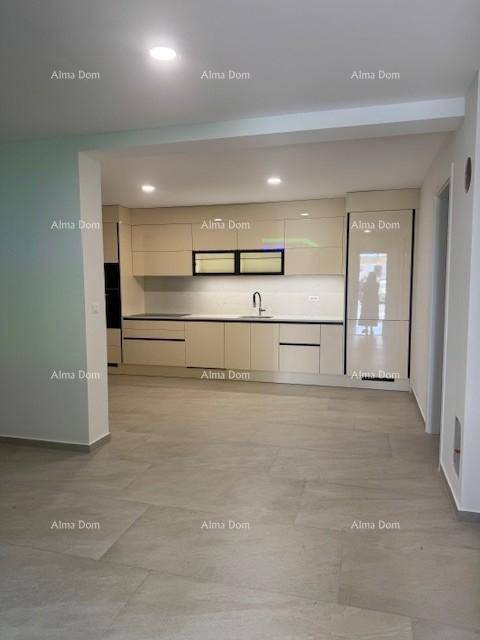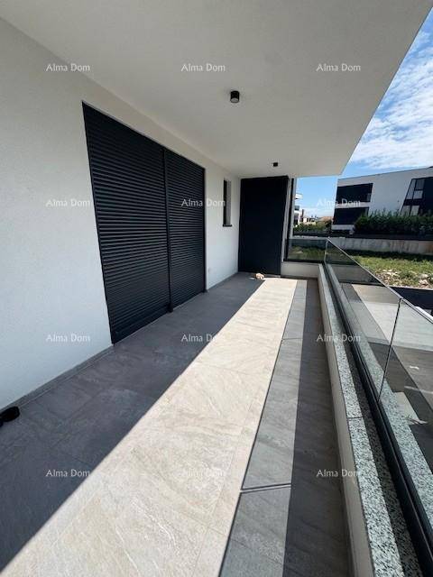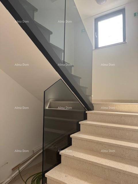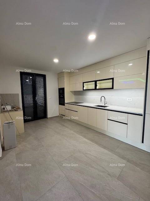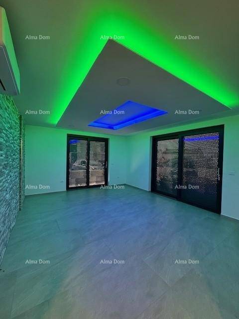 Dvoetažni stan s uređenim vrtom s dvije strane zgrade i grijanim bazenom (24 m²). Prodaje se potpuno namješten i opremljen, s podnim grijanjem i videoparlafonima.