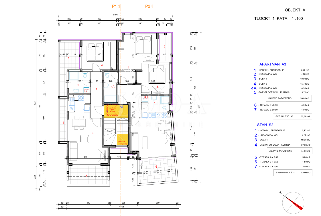 Dvosobni stanovi su koncipirani tako da se lako mogu podijeliti na dva (studio te jednosobni), sa balkonima što ih čini idealnima za turistički najam pogotovo u mjestu kao što je Novalja, koja ima odličnu popunjenost.