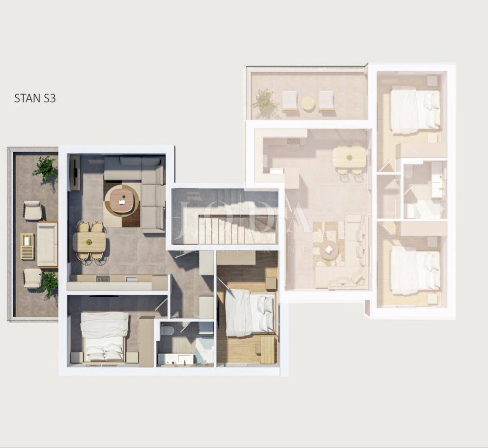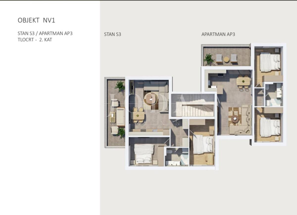 Prizemni stan u vlasništvu ima veliku okućnicu, dok svi ostali stanovi imaju lijepe balkone te prekrasan pogled na more. Planirani završetak radova je ljeto 2025. godine