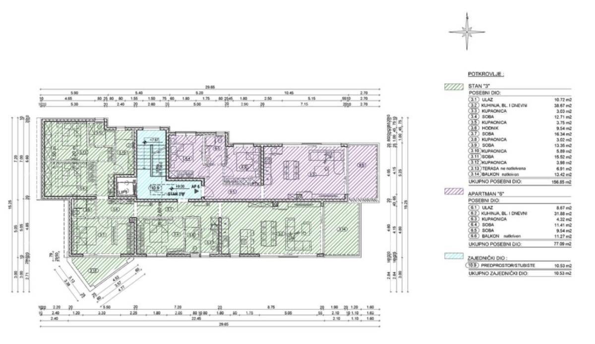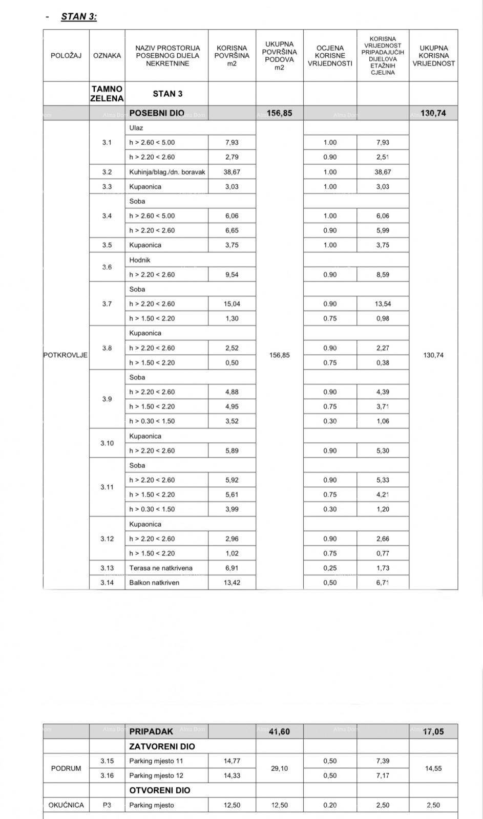 Stan 3 nalazi se u potkrovlju zgrade i sastojat će se od ulaza, kuhinje sa dnevnim boravkom i blagavaonicom, 4 spavaće sobe, 5 kupaonica, natkrivene terase i natkrivenog balkona.