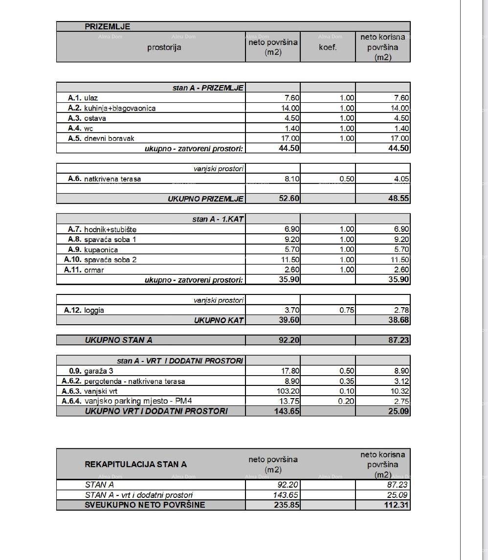 Sveukupna obračunska površina stana iznosi neto 112,31 (235.85) m2.