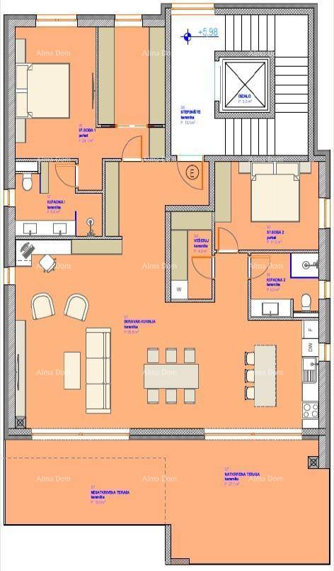 Stan tip E – penthouse nalazi se na 2. katu zgrade s liftom i sastoji se od:
