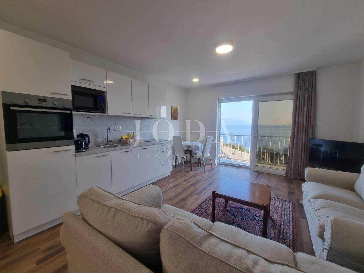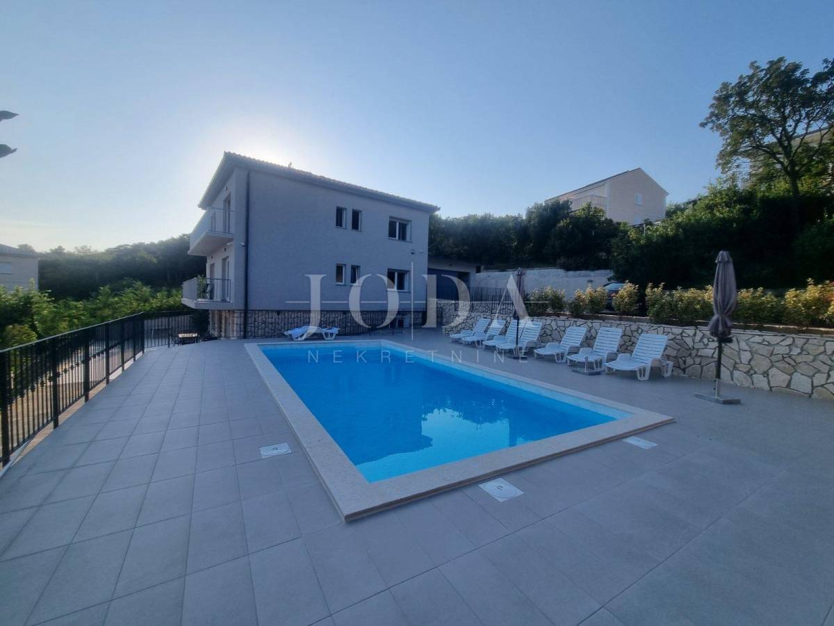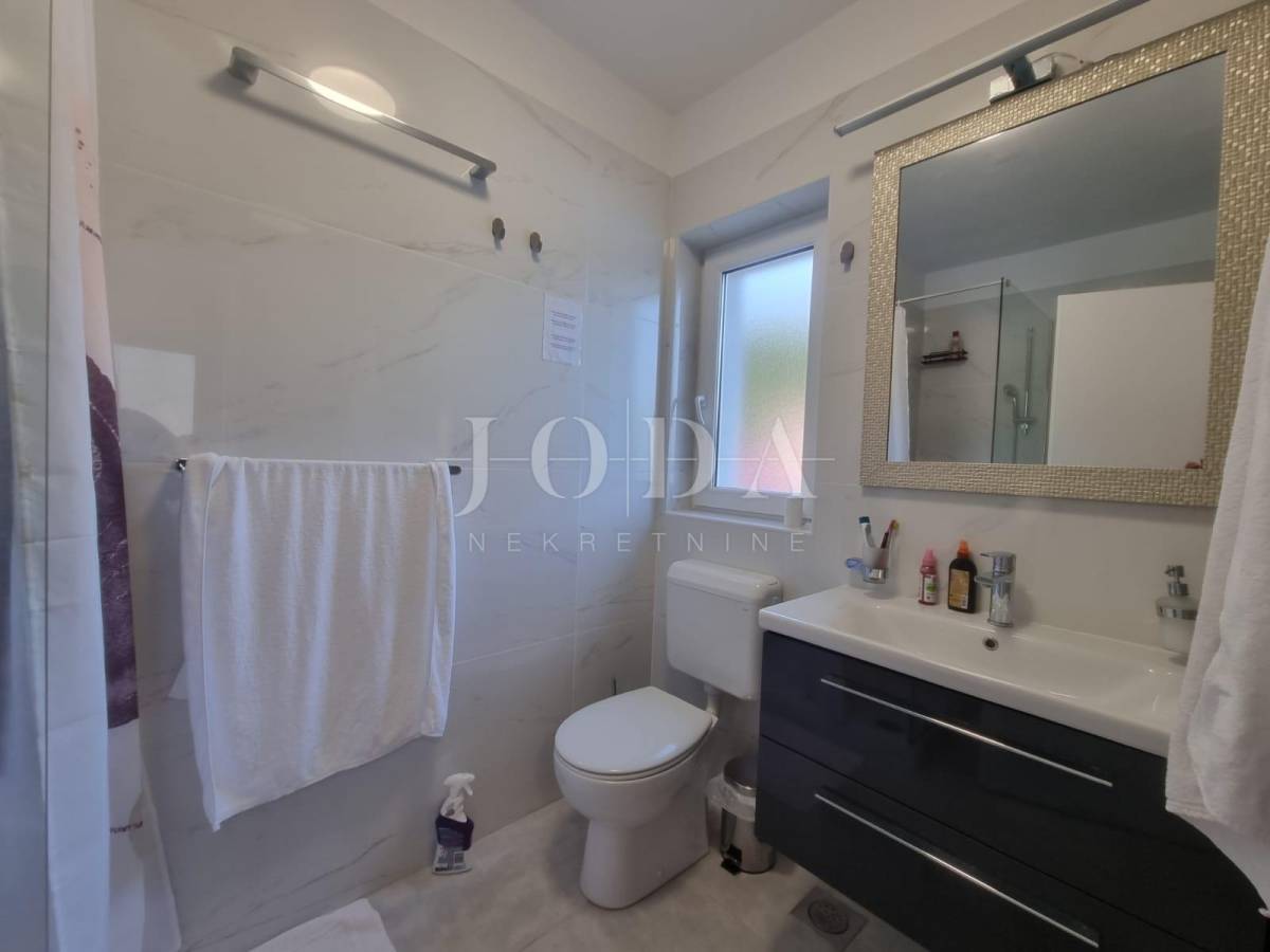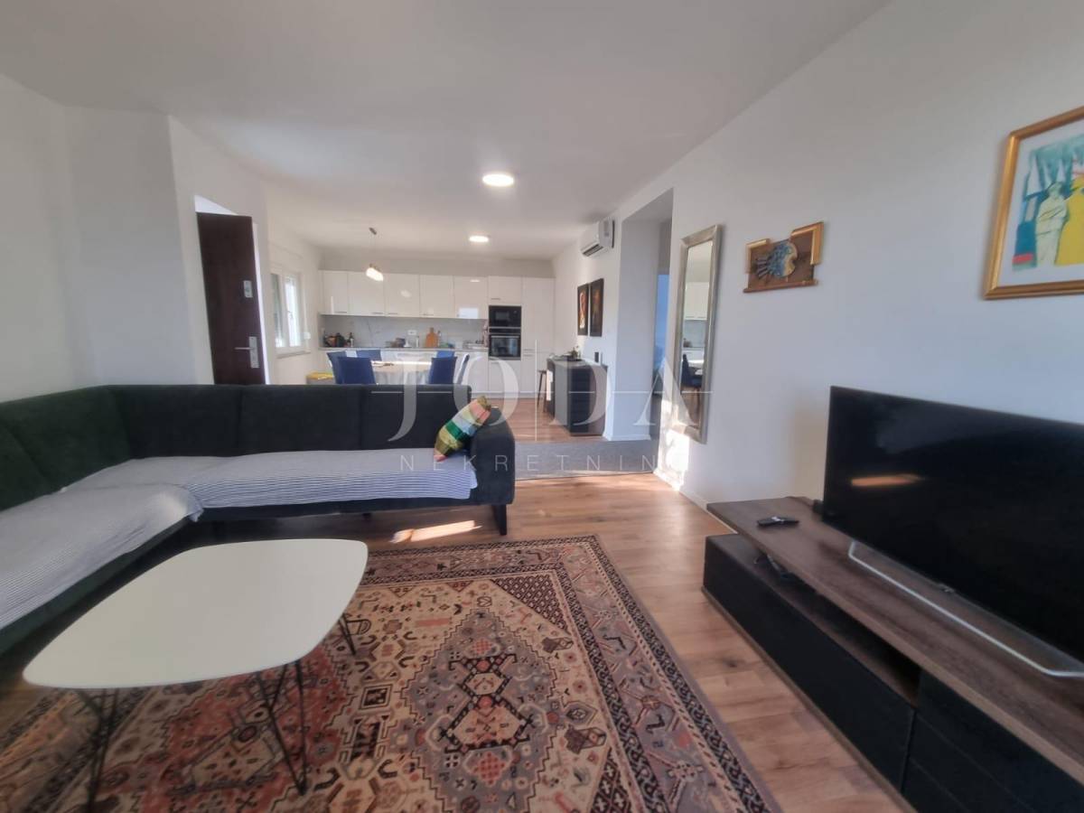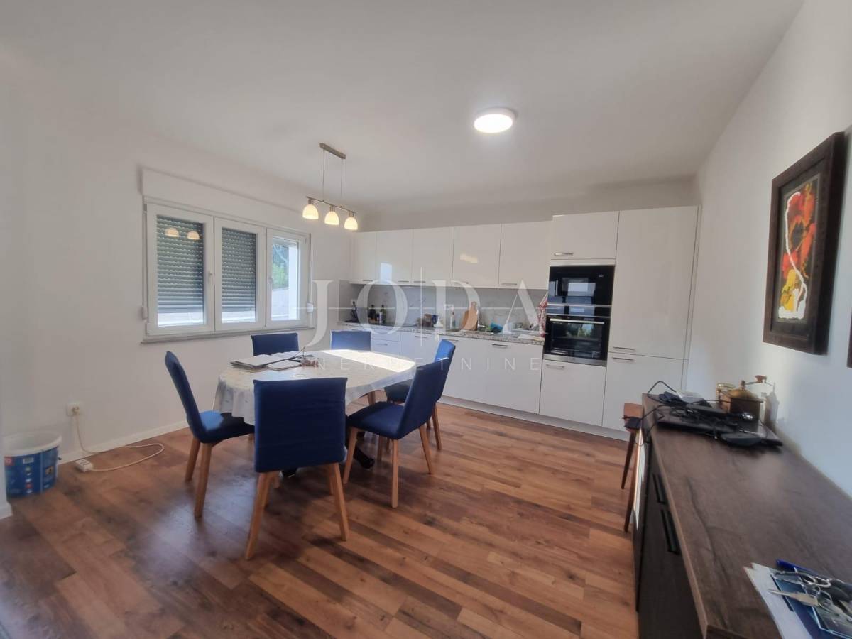 Na posljednoj etaži nalazi se trosobni stan. Sve etaže imaju pogled na more. Unutar prostrane okućnice nalazi se garaža od 40m2 i bazen od 32m2 sa sjenicom i sunčalištem te obezbjeđenim parkingom za pet automobila. Prve dvije etaže prilagođene su osobama sa invaliditetom. Cijela kuća je klimatizirana i u potpunosti namješetna i spremna za korištenje. Svi priključci se mogu odvojiti. Nekretnina zbog fanatstične lokacije i novoizgrađenosti prilika za investiciju ali i za odmor i uživanje preko cijele godine.