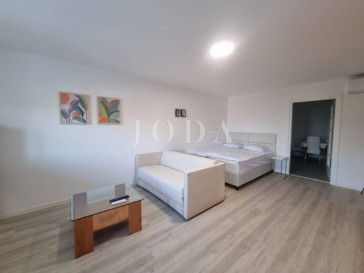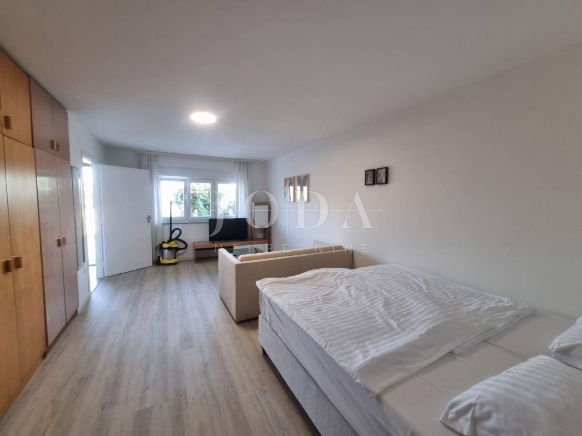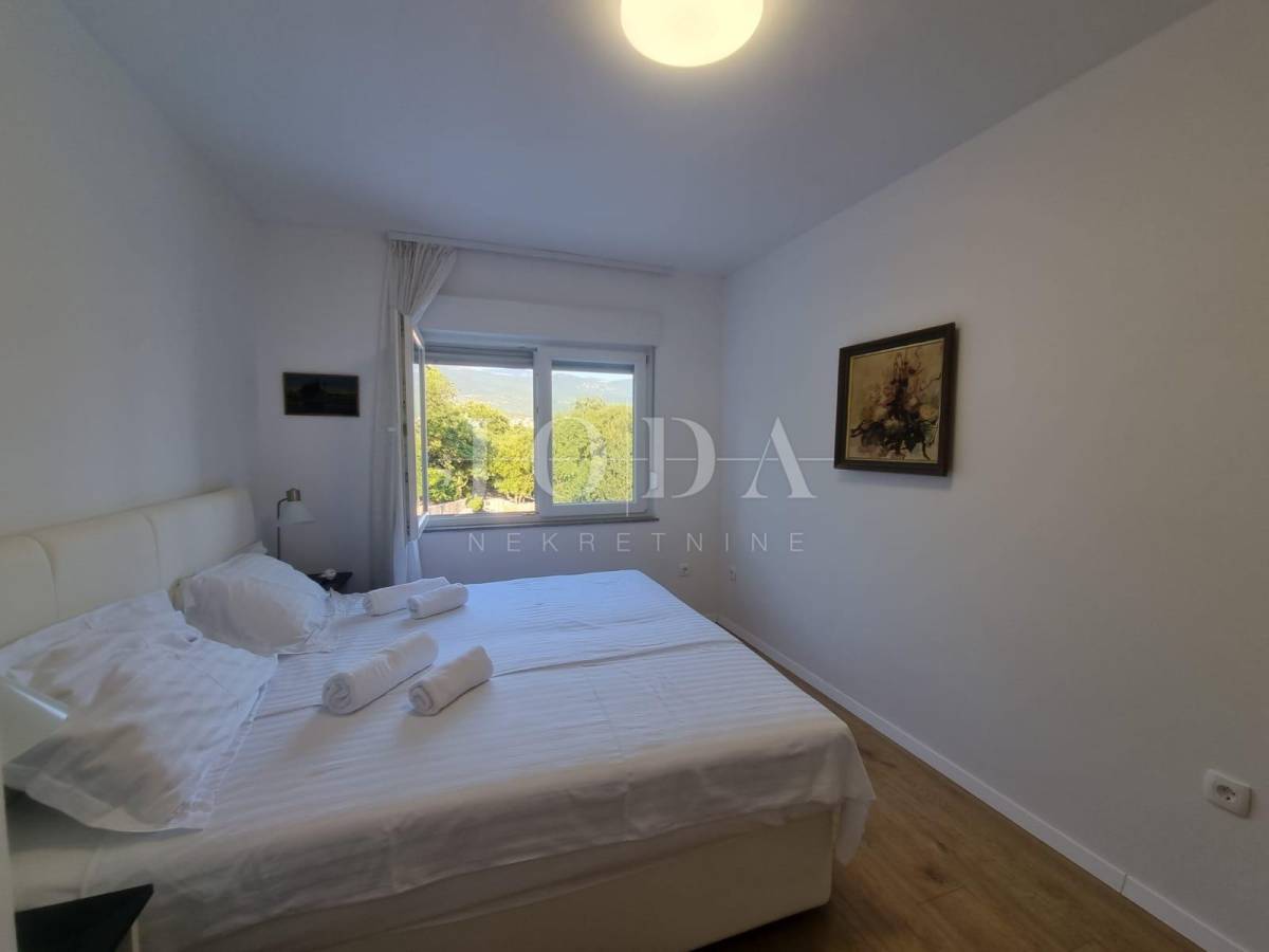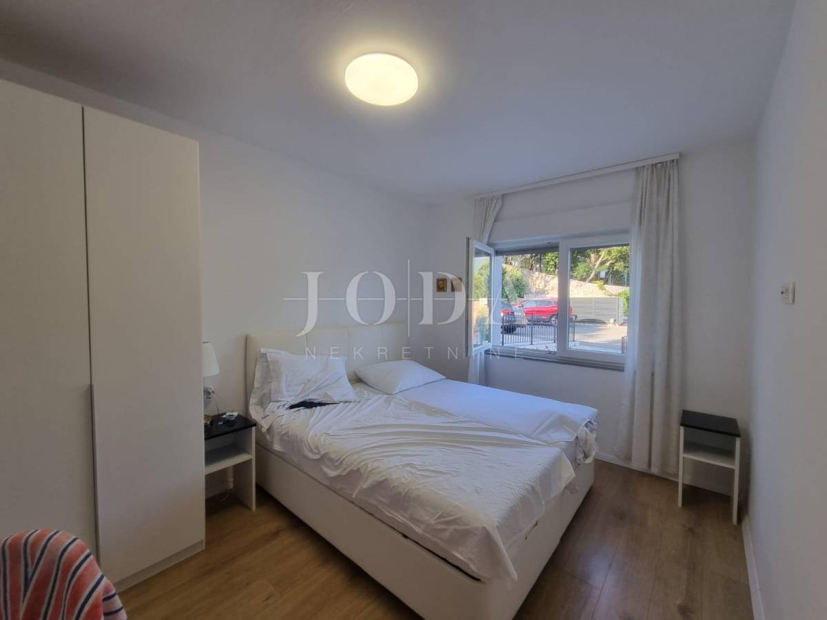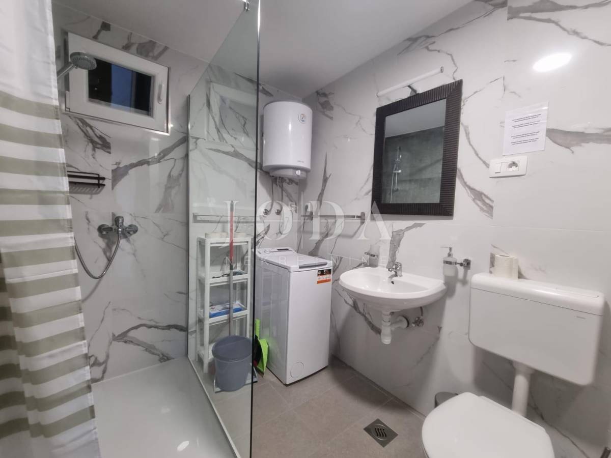 Na posljednoj etaži nalazi se trosobni stan. Sve etaže imaju pogled na more. Unutar prostrane okućnice nalazi se garaža od 40m2 i bazen od 32m2 sa sjenicom i sunčalištem te obezbjeđenim parkingom za pet automobila. Prve dvije etaže prilagođene su osobama sa invaliditetom. Cijela kuća je klimatizirana i u potpunosti namješetna i spremna za korištenje. Svi priključci se mogu odvojiti. Nekretnina zbog fanatstične lokacije i novoizgrađenosti prilika za investiciju ali i za odmor i uživanje preko cijele godine.