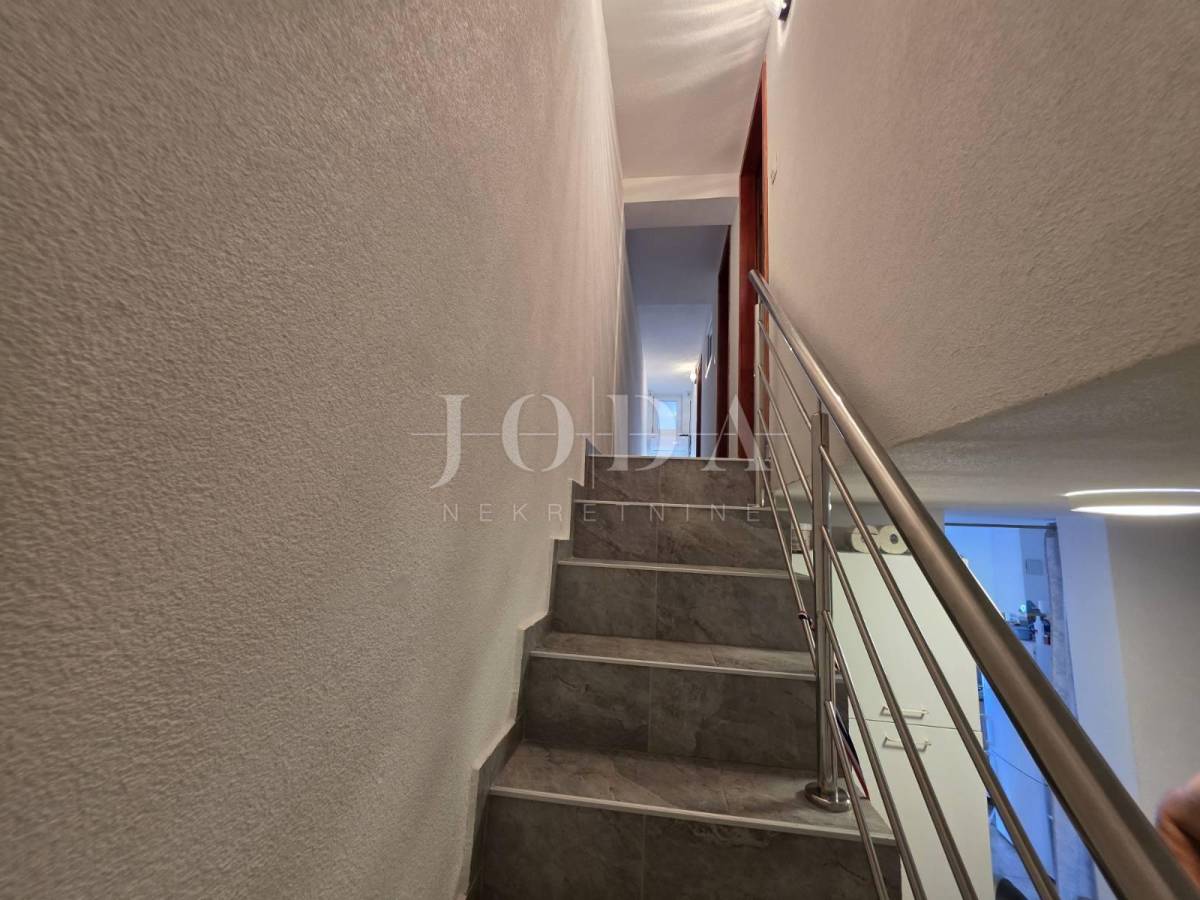 Prodaje se namješten dvoetažni stan u prizemlju stambene zgrade nedaleko od prve plaže. Na prvoj etaži nalazi se dnevni boravak, kuhinja sa blagovaonom, kupaona te prostor za vešeraj smjšten ispod unutarnjih stepenica. Na drugoj etaži nalaze se tri spavaće sobe. Stan je u potpunosti namješten i opremljen sa dva klima uređaja te spreman na korištenje. Stanu pripada jedno parkirno mjesto u vlasništvu koje se nalazi unutar ograđenog dijela pod videonadzorom. Izvrsna prilika za kupnju nekretnine na odličnoj lokaciji.