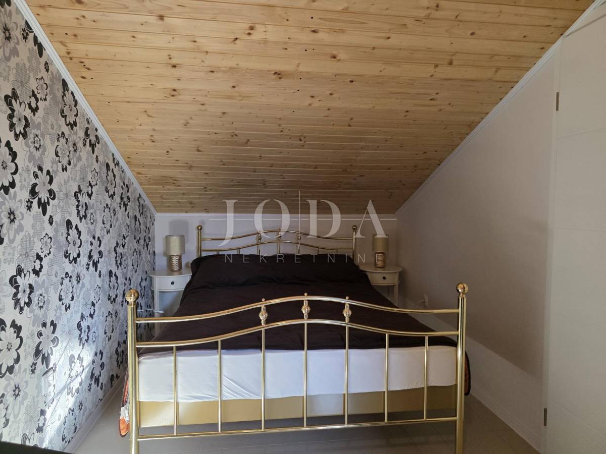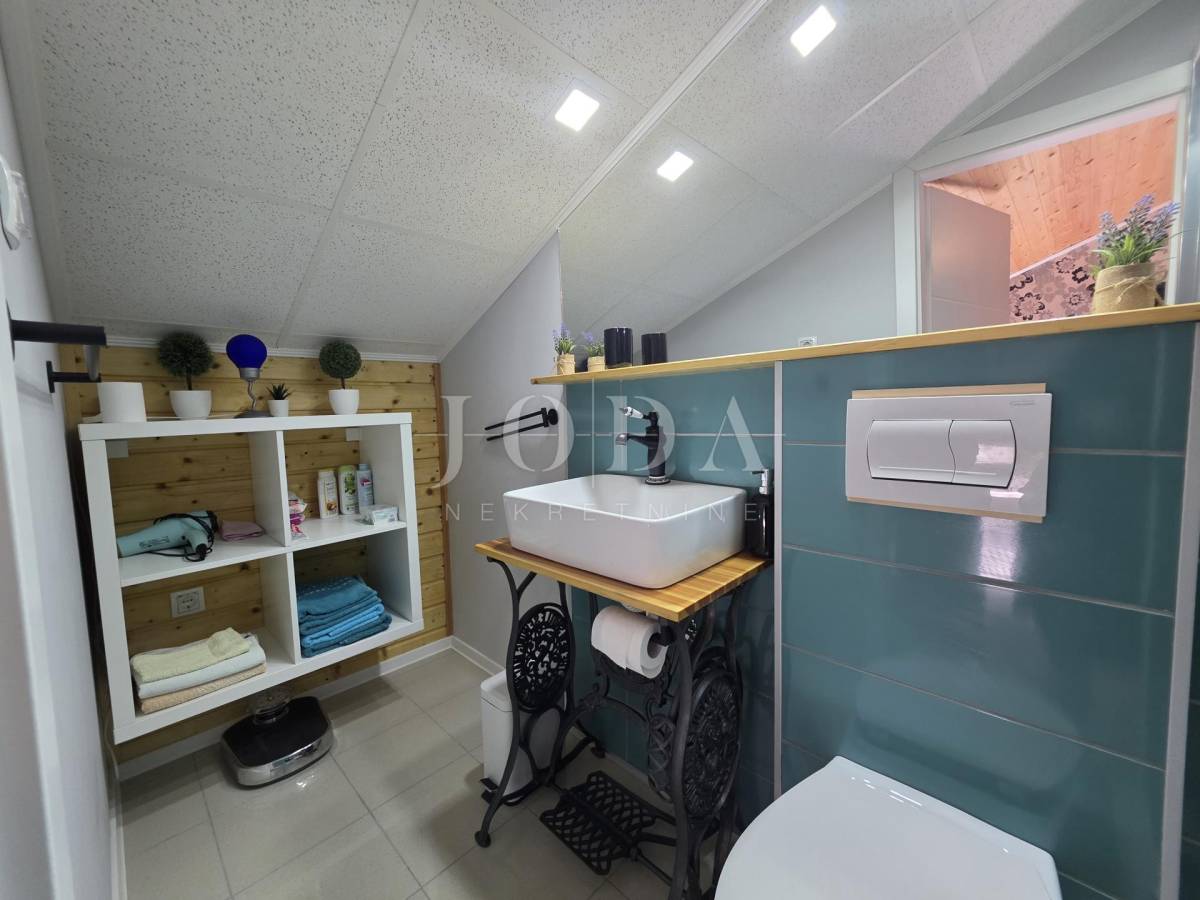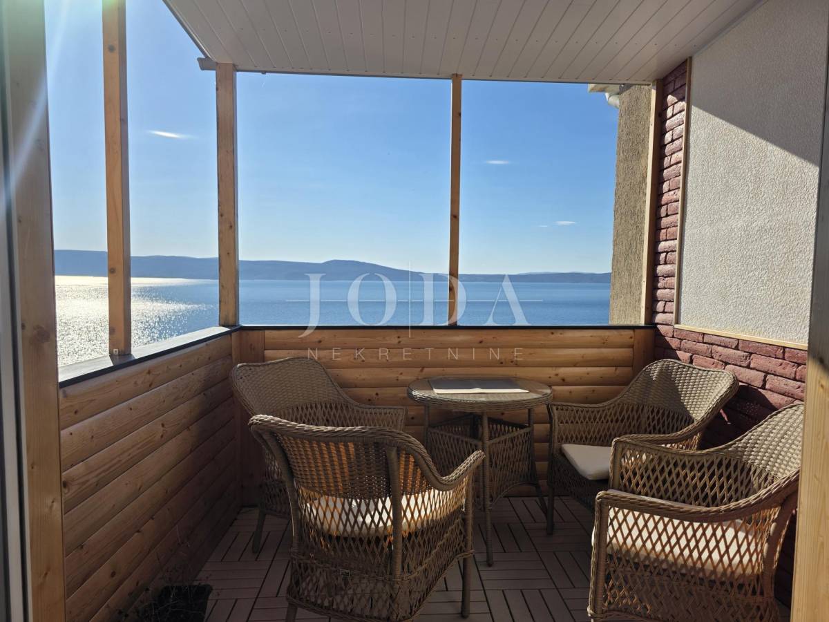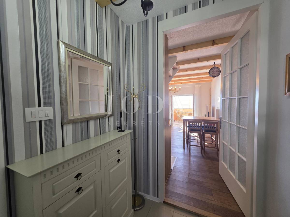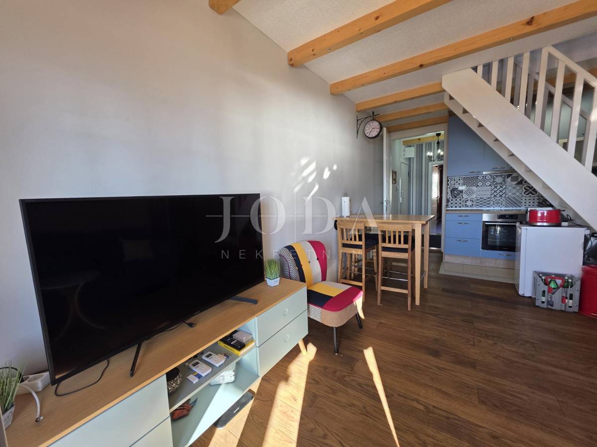 Prodajemo dvoetažni stan u stambenoj zgradi. Na prvoj etaži nalazi se kuhinja sa blagovaonom, dnevni boravak, ulazni hodnik, kupaona, jedna spavaća soba i balkon. Unutrašnjim stepenicama ide se na drugu etažu, gdje se nalazi spavaća soba, kupaona i spremište. Stan je u potpunosti adaptiran 2023. godine te s pažnjom uređen, korištenjem modernih i kvalitetnih materijala. Nekretnina se prodaje namještena i klimatizirana (opremljena sa dva klima uređaja). Prekrsan pogled na more! Parking u krugu okućnice zgrade.