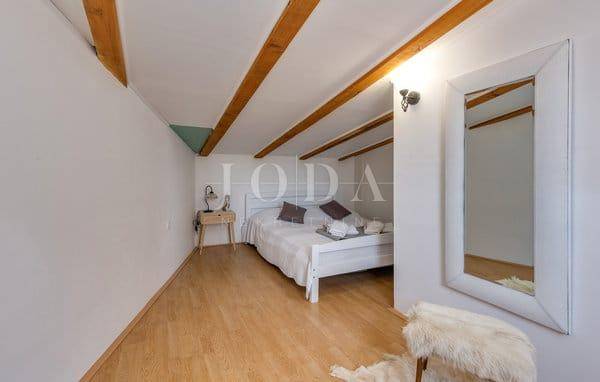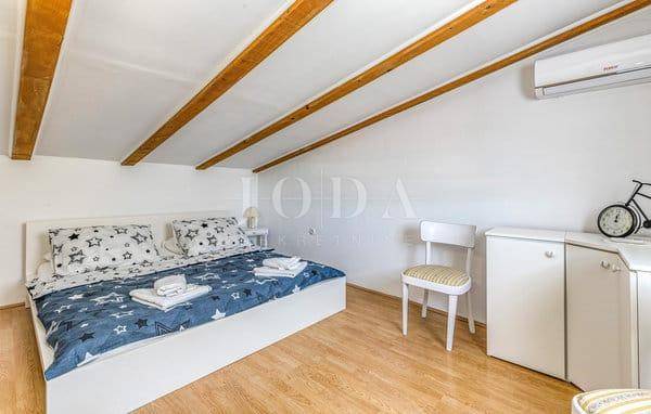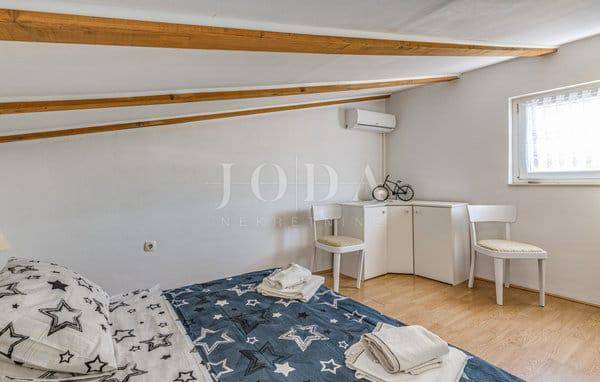 Prodajemo kuću na mirnoj lokaciji grada. Sastoji se od prizemlja i kata. Sastoji se od dvije spavaće sobe, kuhinje, blagovaone, dnevnog boravka te mini mini wellnessa (sauna i jacuzzi). Unutar okućnice nalazi se natkrivena terasa sa roštiljemKuća za odmor i uživanje ali i za turistički najam.