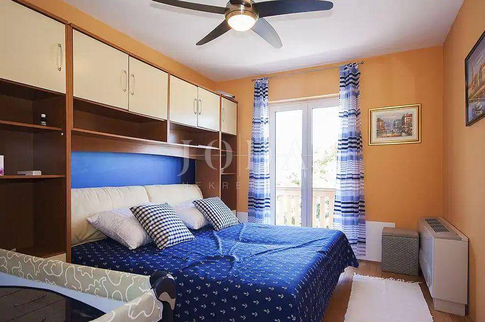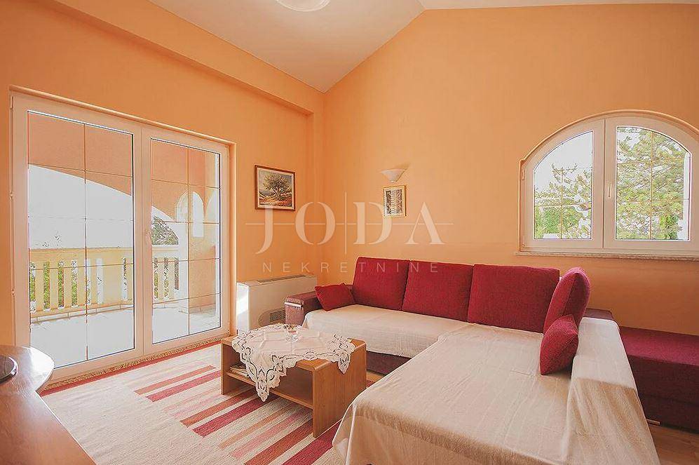 Na jednoj od najljepših lokacija na crikveničkoj rivijeri prodaje se samostojeća kuća sa dva dvosobna stana sa dnevnim boravkom. Unutar okućnice koja je potpuno formirana sa ljetnom kuhinjom, sjenicom i grillom nalazi se bazen sa sunčalištem te zelena ograda. Kuća je građena sa visokokvalitetnim materijalima, demit fasadom 8cm. Centralno grijanje, podizači topline, klimatizacija. Parkirna mjesta za 4 automobila.