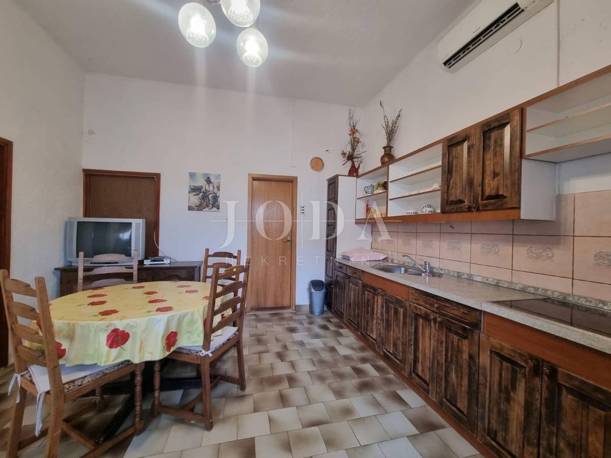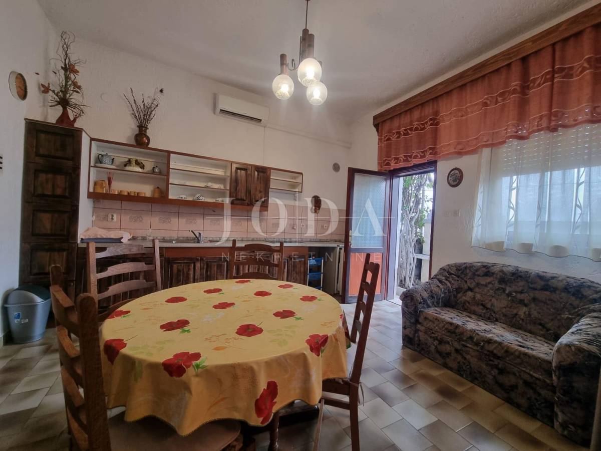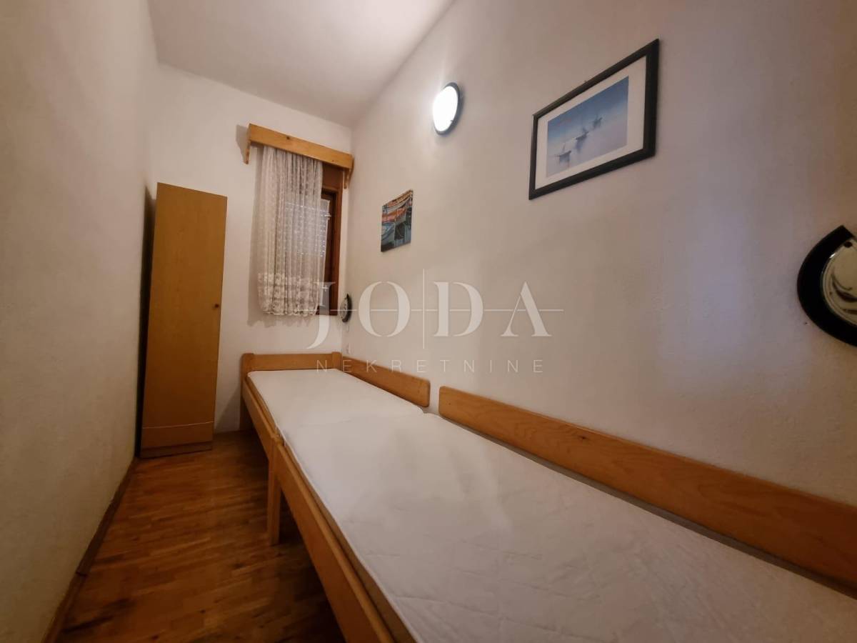 Prizemlje obuhvata dva apartmana, od kojih je jedan površine 40m2, a drugi prostraniji s 62m2, uključujući terasu i vrt s kaminom od 55m2.
