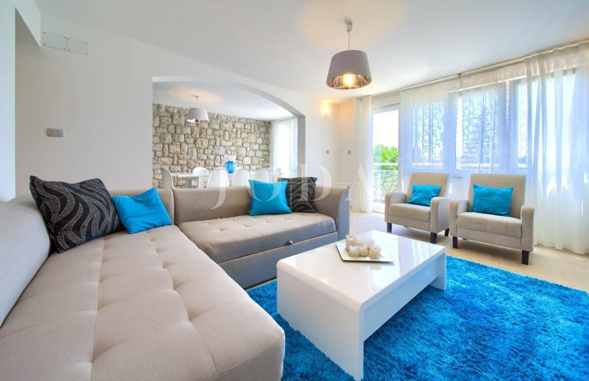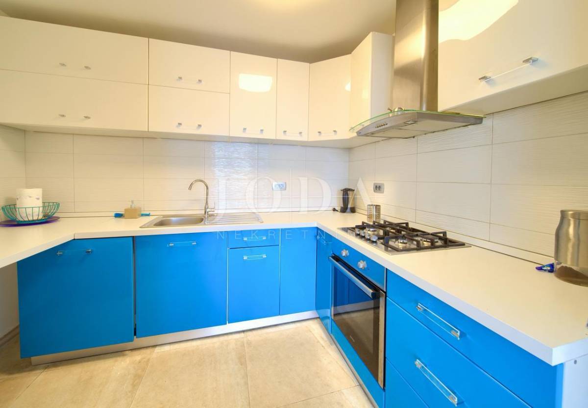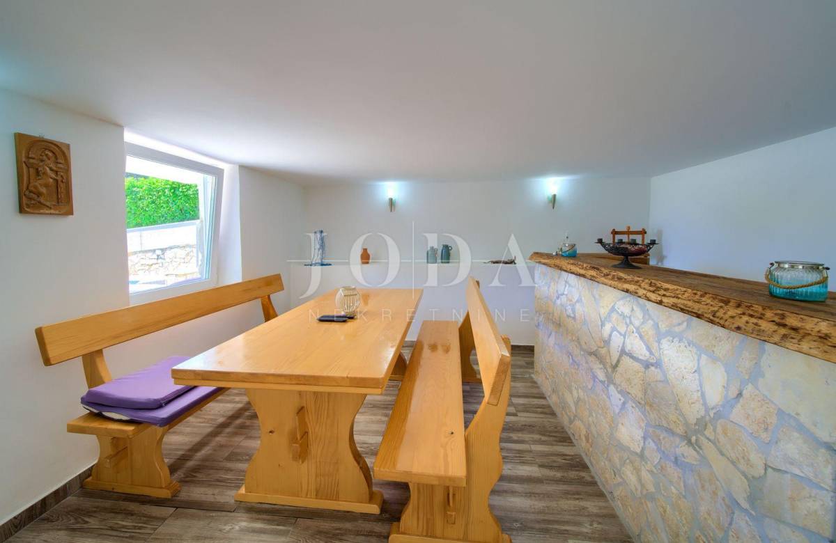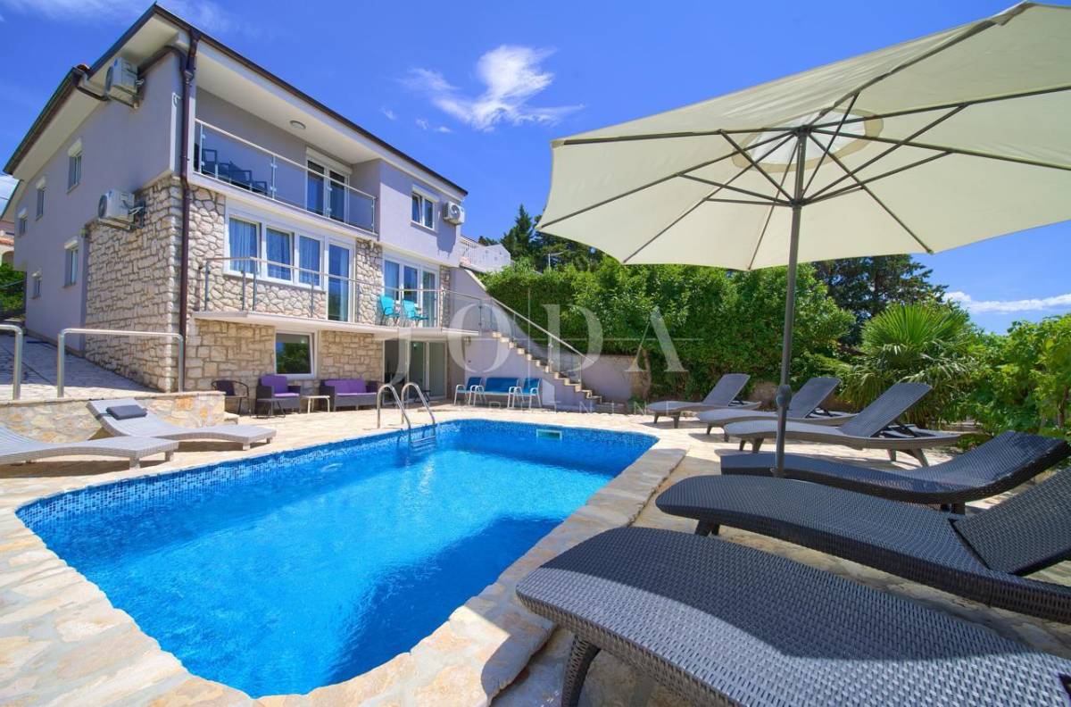 Prodaja kuće u Novom Vinodolskom s bazenom i sunčalištem, svega 150 m udaljena od mora, plaže i šetnice. Kuća se prostire na tri etaže. U suterenu je prostorija za druženje s WC-om. U prizemlju su dvije spavaće sobe, kuhinja, dnevni boravak i kupaonica, a etaža ima izlaz na balkon s južne strane s pogledom na more. Grijanje je na klima uređaj i električne radijatore. Spiralne stepenice vode na prvi kat gdje se nalaze tri spavaće sobe, balkon sa predivnim pogledom na more i otok Krk, dvije kupaonice, predsoblje s garderobom i kotlovnicom, s odvojenim vanjskim ulazom. U dvorištu kuće su tri parkirna mjesta, a tu je i još jedna dodatna prostorija i grill.