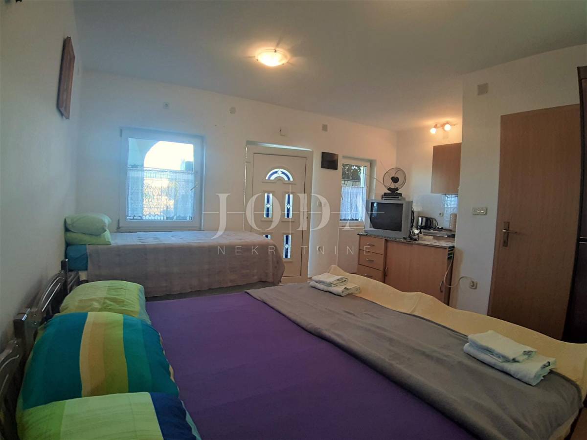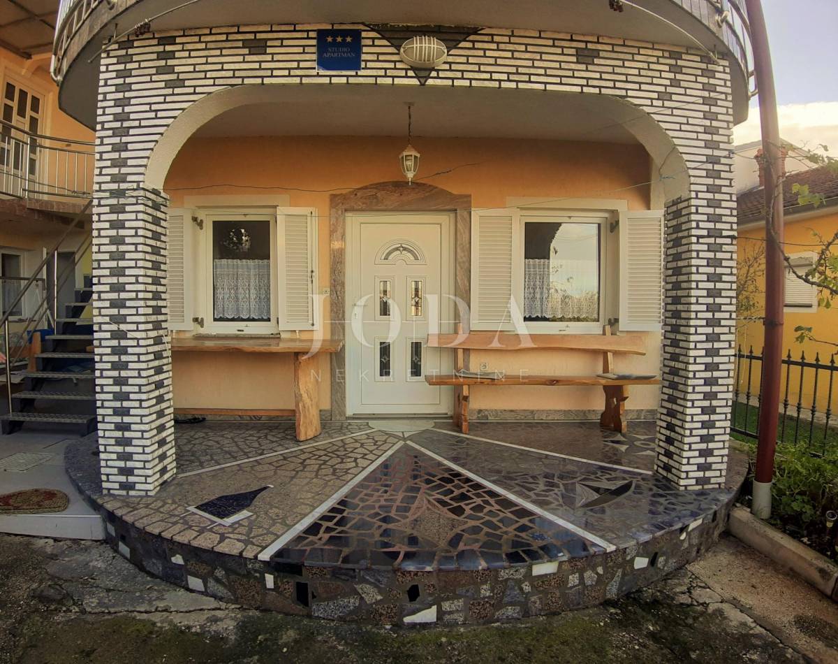 Prodajemo kuću sa četiri manja apartmana na mirnoj lokaciji nedaleko od centra grada sa prekrasnim pogledom na more i grad. Svaki apartman ima svoj poseban ulaz. U prizemlju se nalaze dva studio apartmana, vanjskim stepenicama ide se na kat, gdje se nalazi jedan jednosobni i jedan studio apartman sa pripadajućim balkonima. Kuća je u potpunosti namještena i klimatizirana, te spremna za korištenje. Unutar ograđene okućnice nalaze se dva parkirna mjesta.