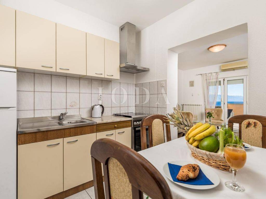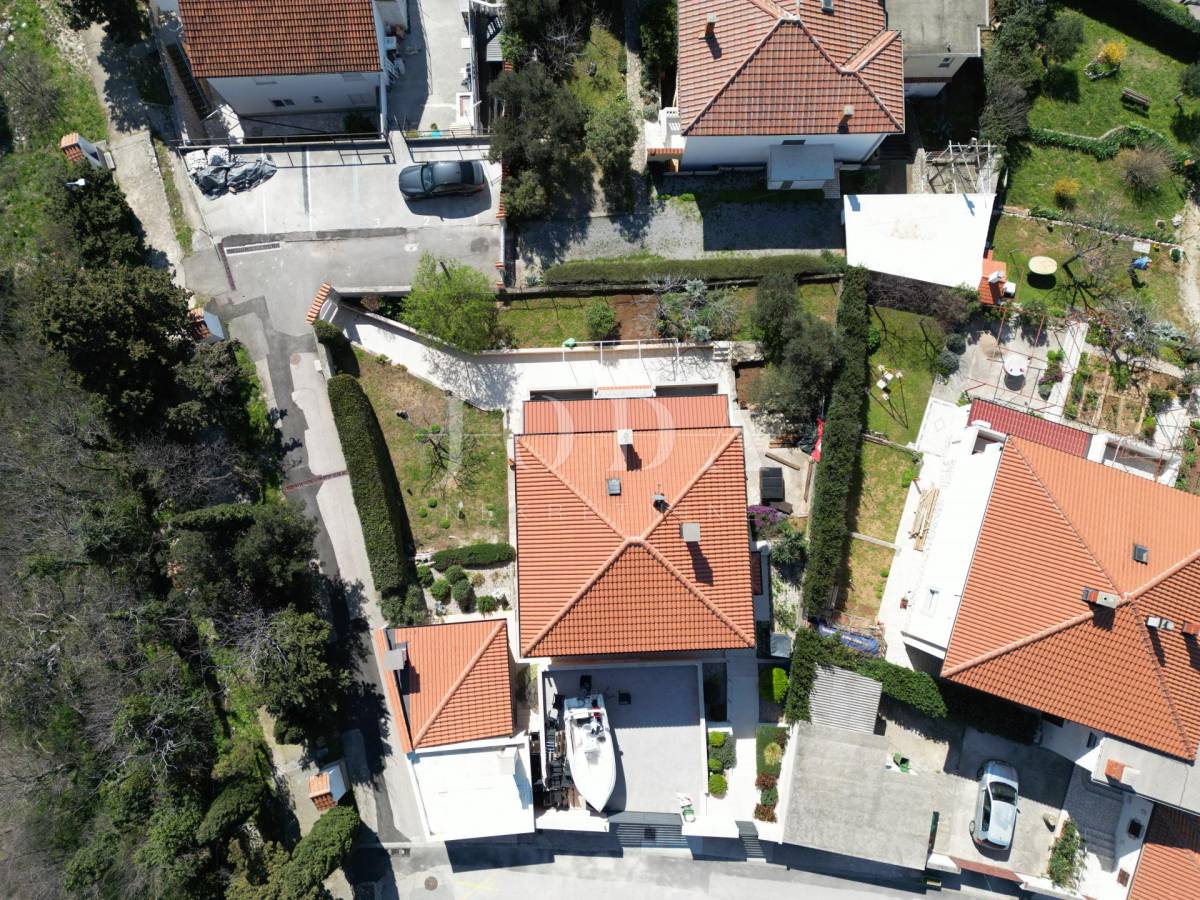 Prodajemo kuću na mirnoj i lijepoj lokaciji na samo 100m od mora. Kuća se proteže na tri etaže. U prizemlju se nalazi jednosobni aprtman sa prostranom terasom. Na prvoj etaži nalazi se novouređeni stan koji se sastoji od kuhinje, blagovaone i dnevnog boravka otovrenog koncepta, dvije spavaće sobe, ulaznog hodnika, kupaone, wc-a i dvije prostrane terase. Na drugoj etaži nalazi se i dvosobni stan, koji ima izlaz na natkrivenu terasu sa koje se pruža predivan pogled na more. Unutarnje stepenice daju mogućnost spajanja dva stana u jednu luksuznu dvoetažnu cijelinu. Kuća je adaptirana 2018. godine (postavljena je nova fasada, izgrađeno spremište i nova kotolovnica za centralno grijanje na naftu, ljetna kuhinja sa sjenicom i kamenim roštiljem, interijer stanova, zelene površine te parking za više automobila). Nekretina idealna za odmor i uživanje ali i kao investicija.