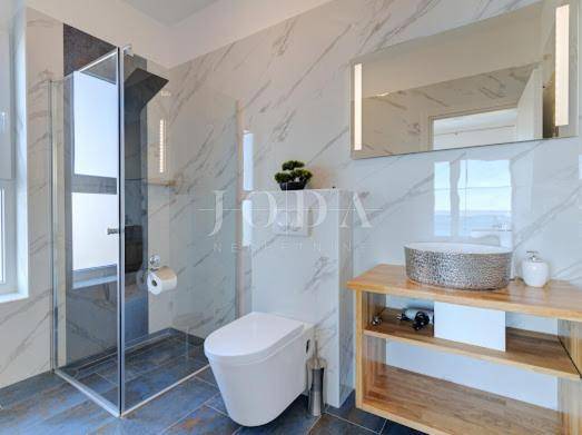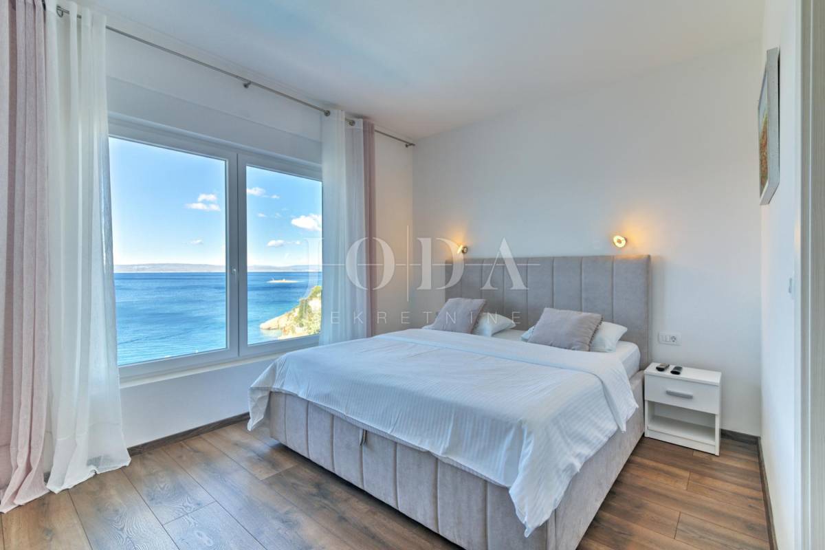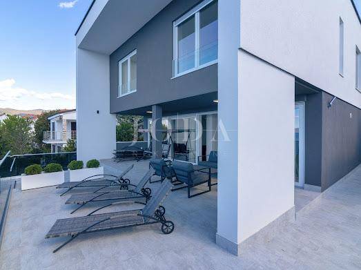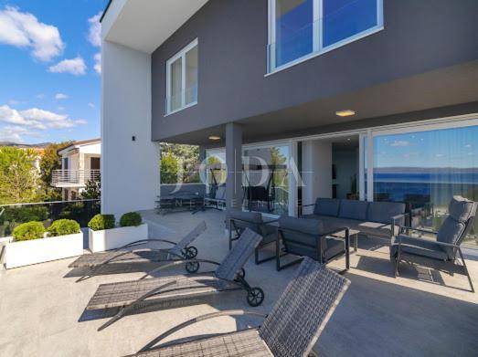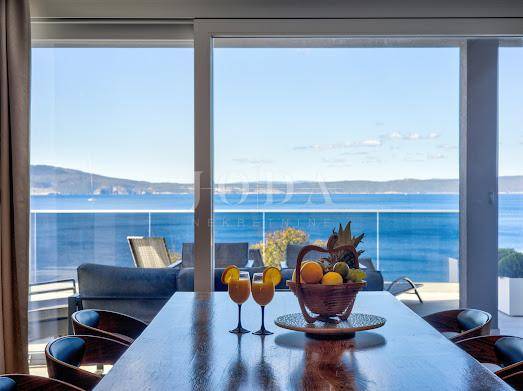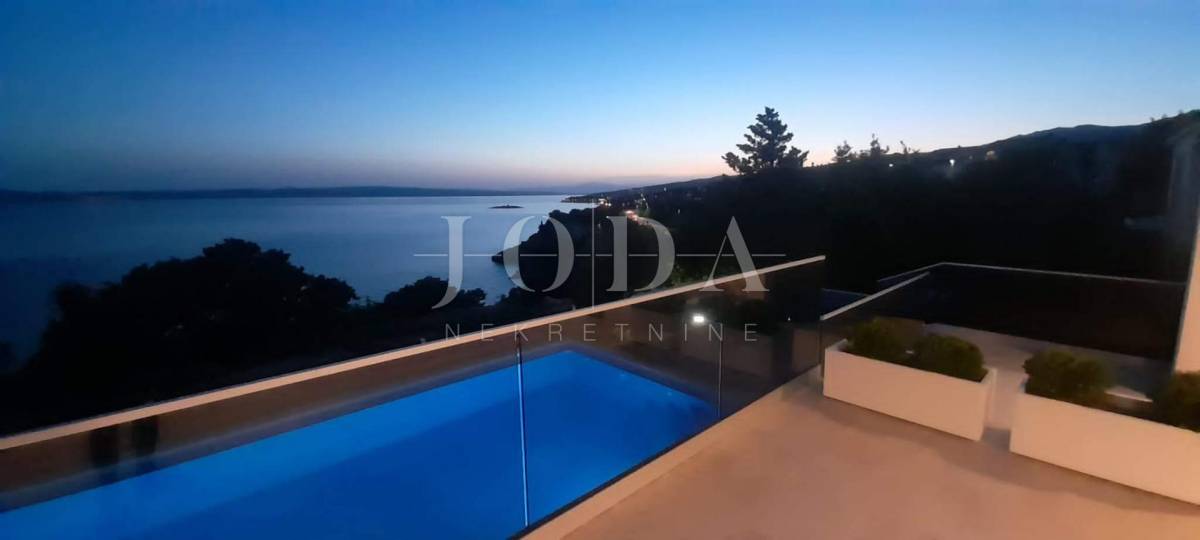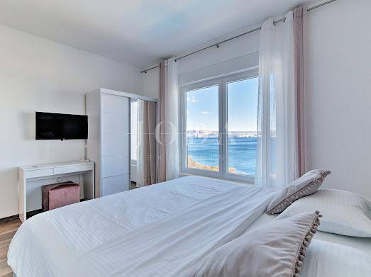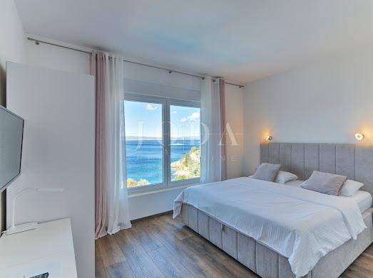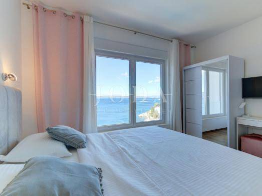 Unutar lijepo uređene i formirane okućnice,smještena je ova moderna katnica sa spektakularnim pogledom na more.