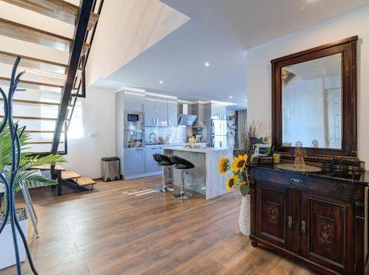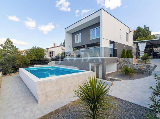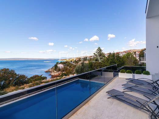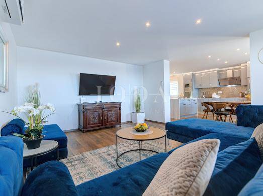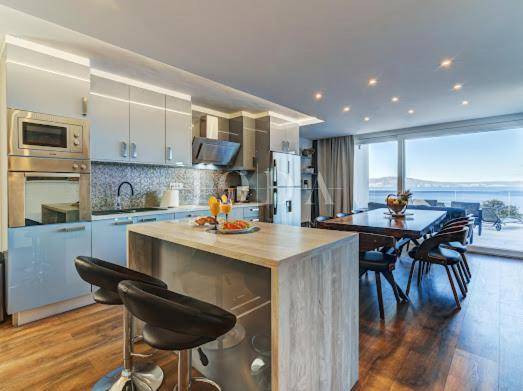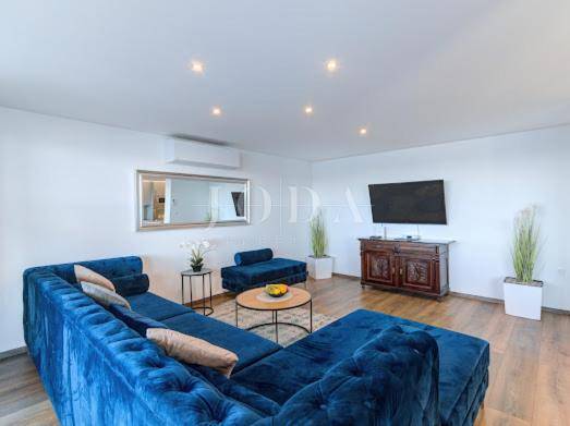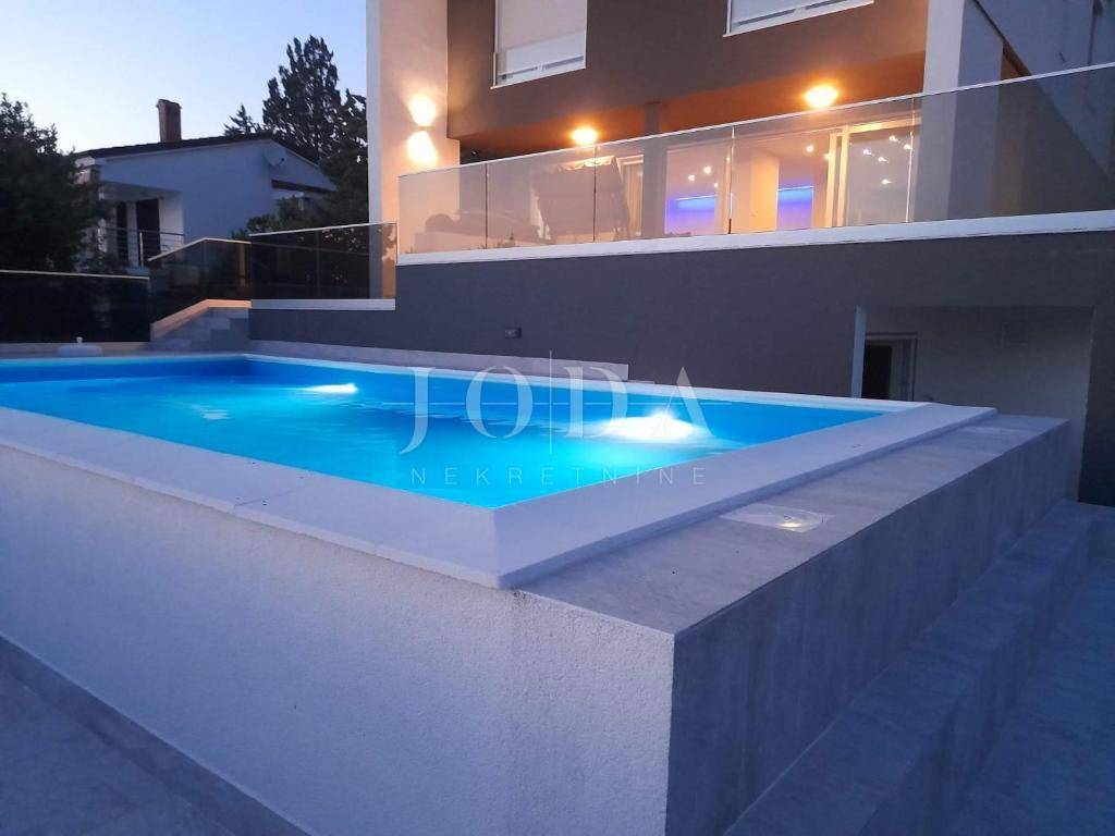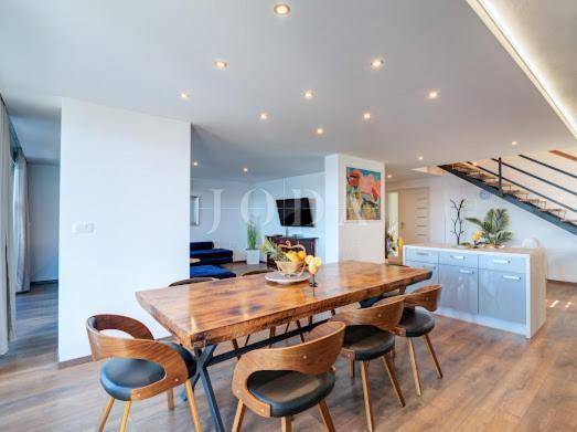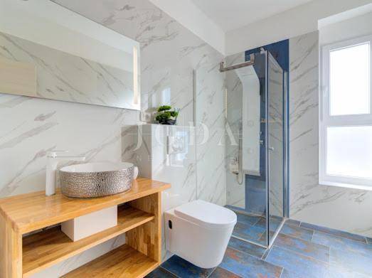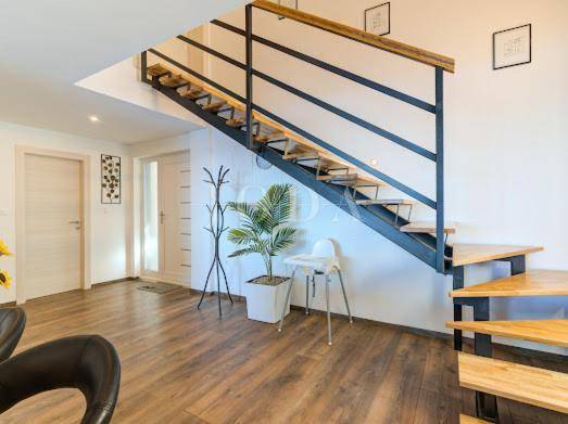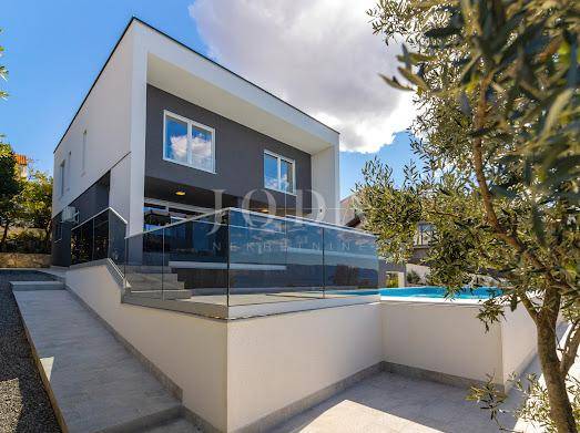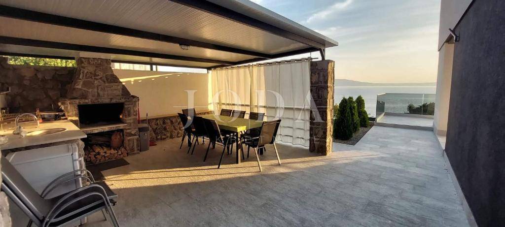 Unutar lijepo uređene i formirane okućnice,smještena je ova moderna katnica sa spektakularnim pogledom na more.