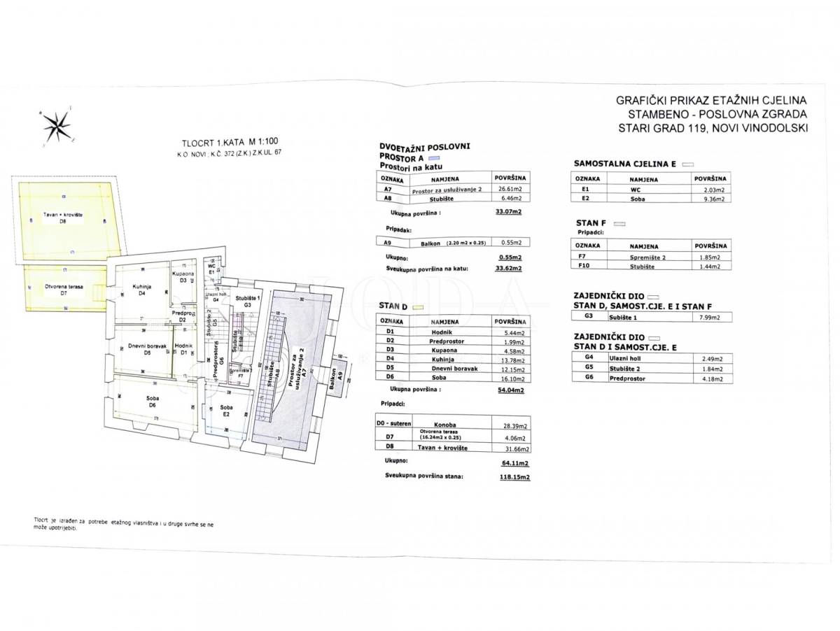 Kuća je etažirana, što omogućuje pojedinačnu prodaju svake jedinice, što je osobito privlačno za potencijalne investitore.