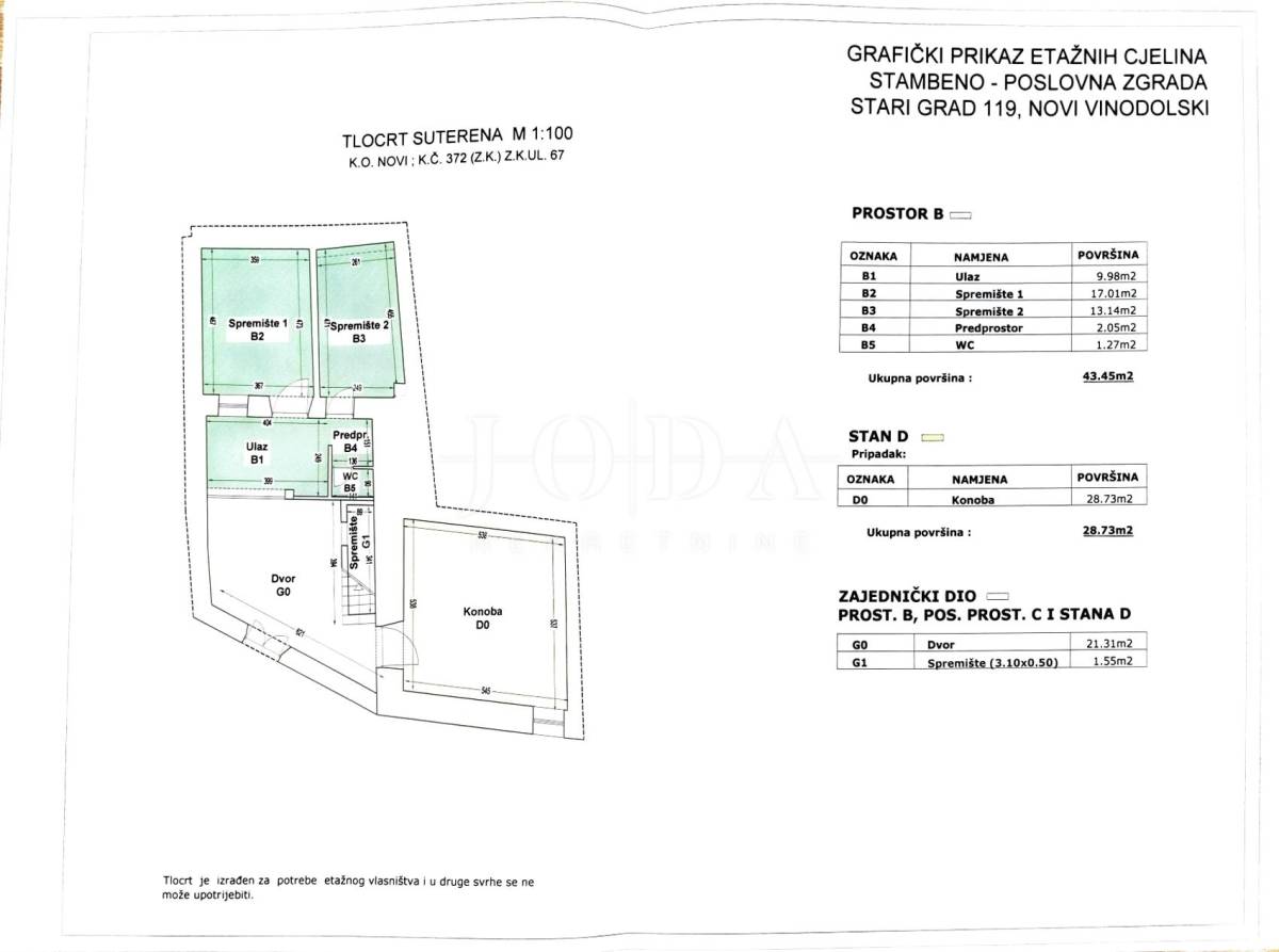 U suterenu zgrade, s vlastitim zasebnim ulazom, nalazi se dodatni prostor od 43,45 m2 koji uključuje: