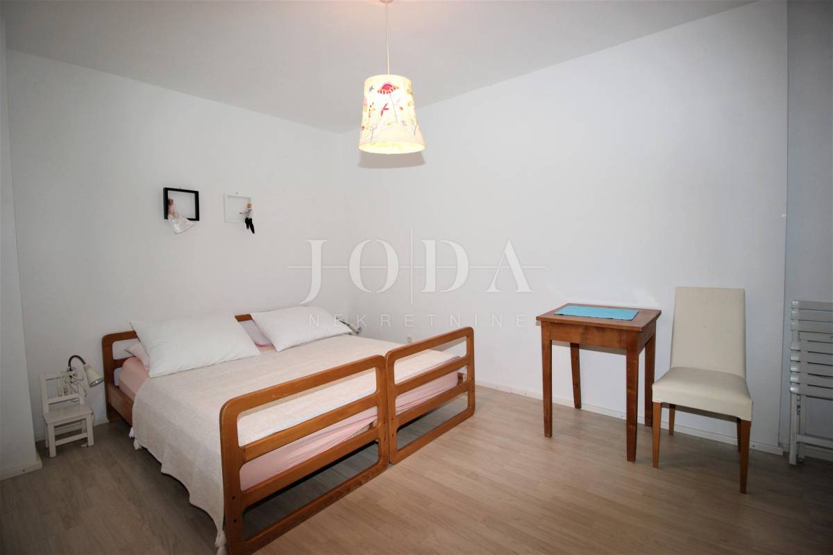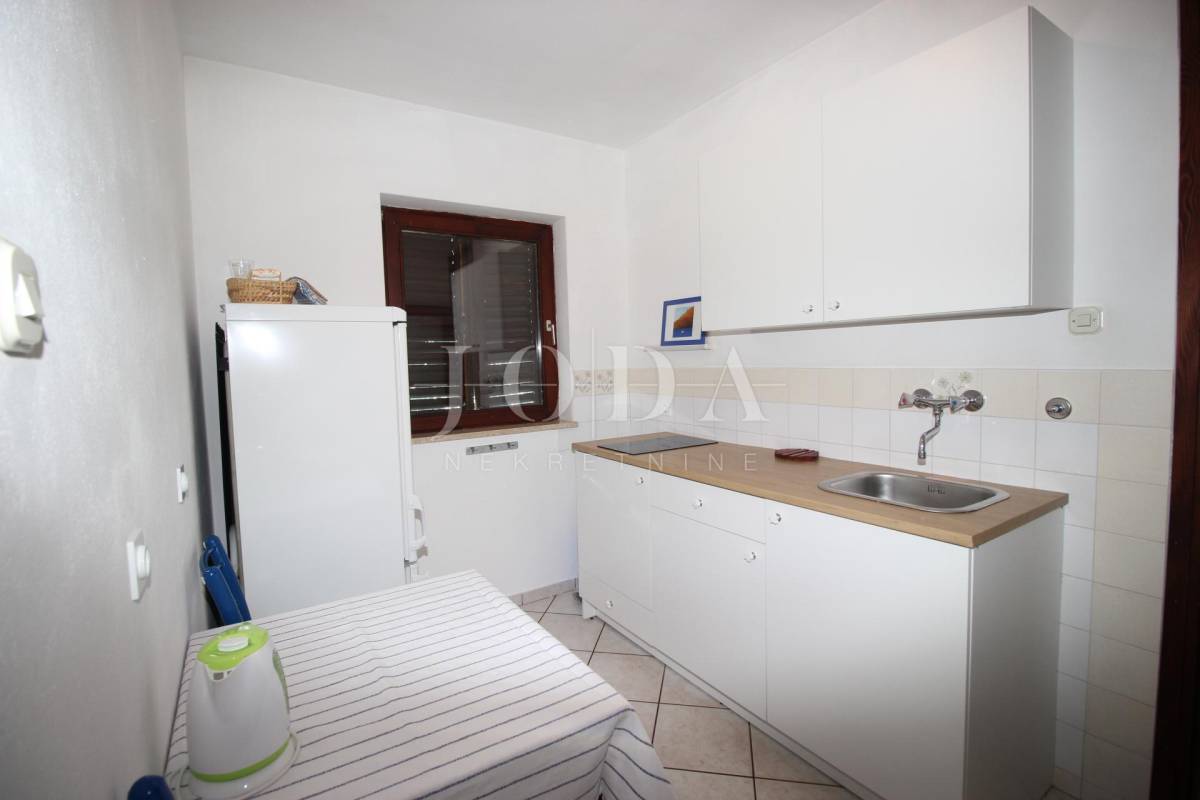Prodajemo stan na drugom katu kuće sa prekrasnim pogledom na more. Stan se sastoji od dvije spavaće sobe, kuhinje, dnevnog boravka, hodnika, ostave, kupaone ,terase i potkrovlja od 22m2. Stanu pripada okućnica od 72m2. Nekretnina idealna za odmor ali i za stalni boravak.