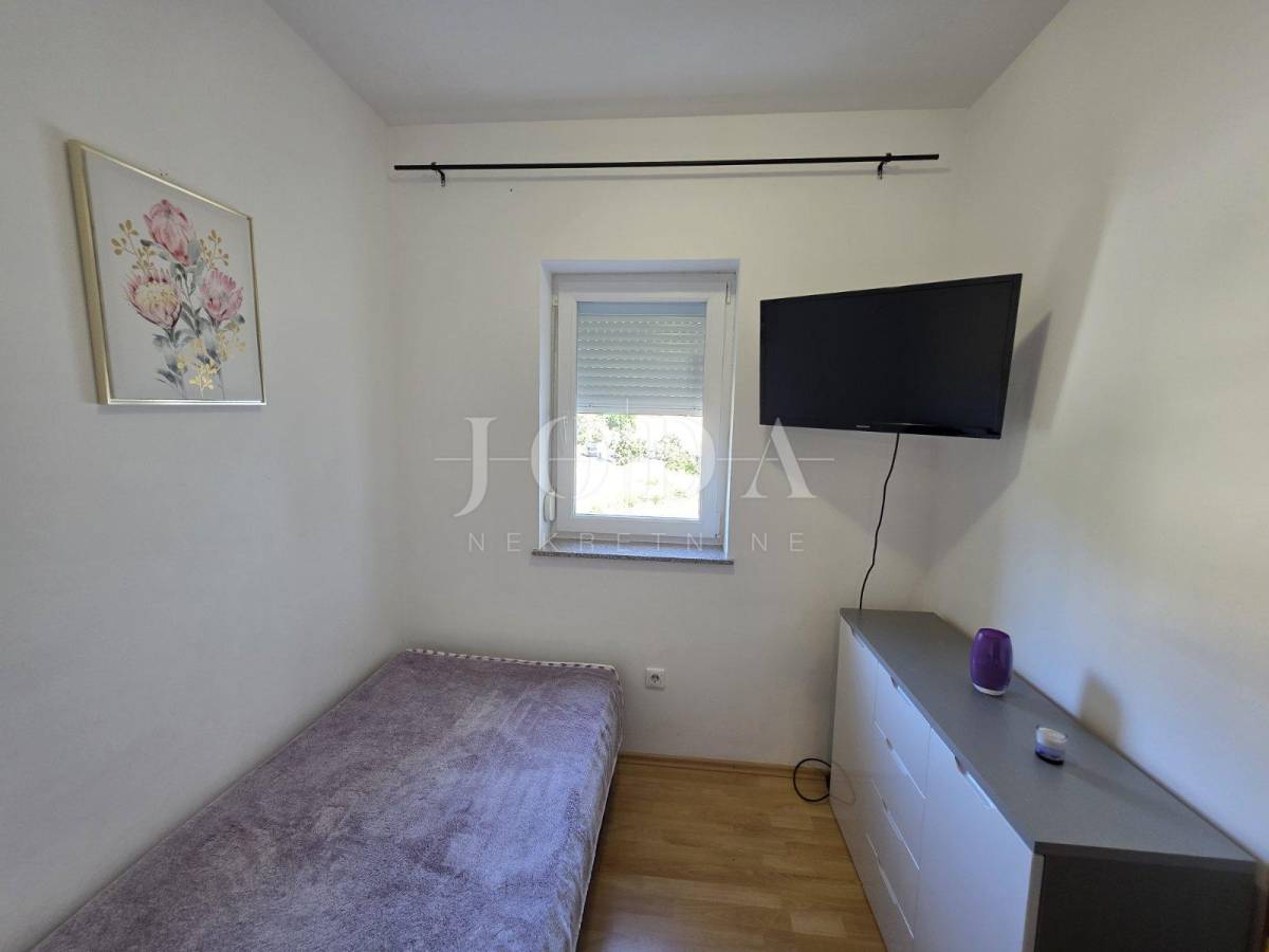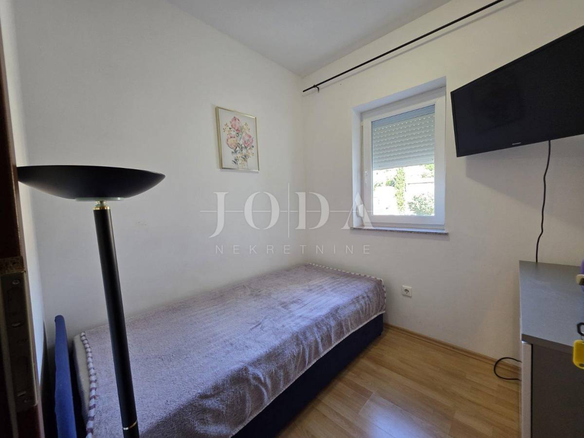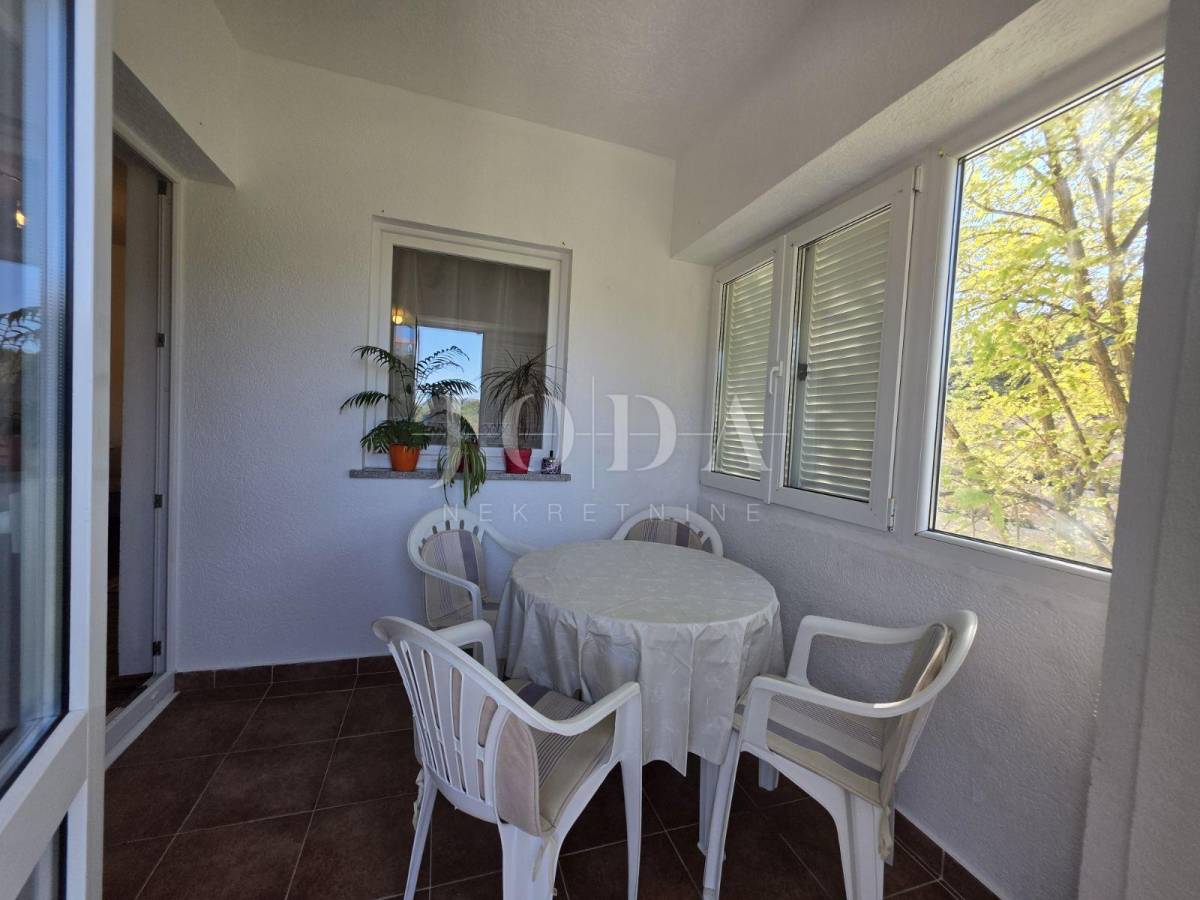 Prodajemo stan na mirnoj i lijepoj lokaciji, ali u blizini svih potrebnih sadržaja. Stan se nalazi na prvom katu stambene zgrade u nedaleko od prve plaže. Sastoji se od kuhinje sa blagovaonom, dnevnog boravka, hodnika, dvije spavaće sobe i loggie. Nekretnina je u poptunosti namještena i klimatizirana te se kao takva i prodaje. Idelana je za odmor i uživanje, ali i za cjelogodnišni boravak.
