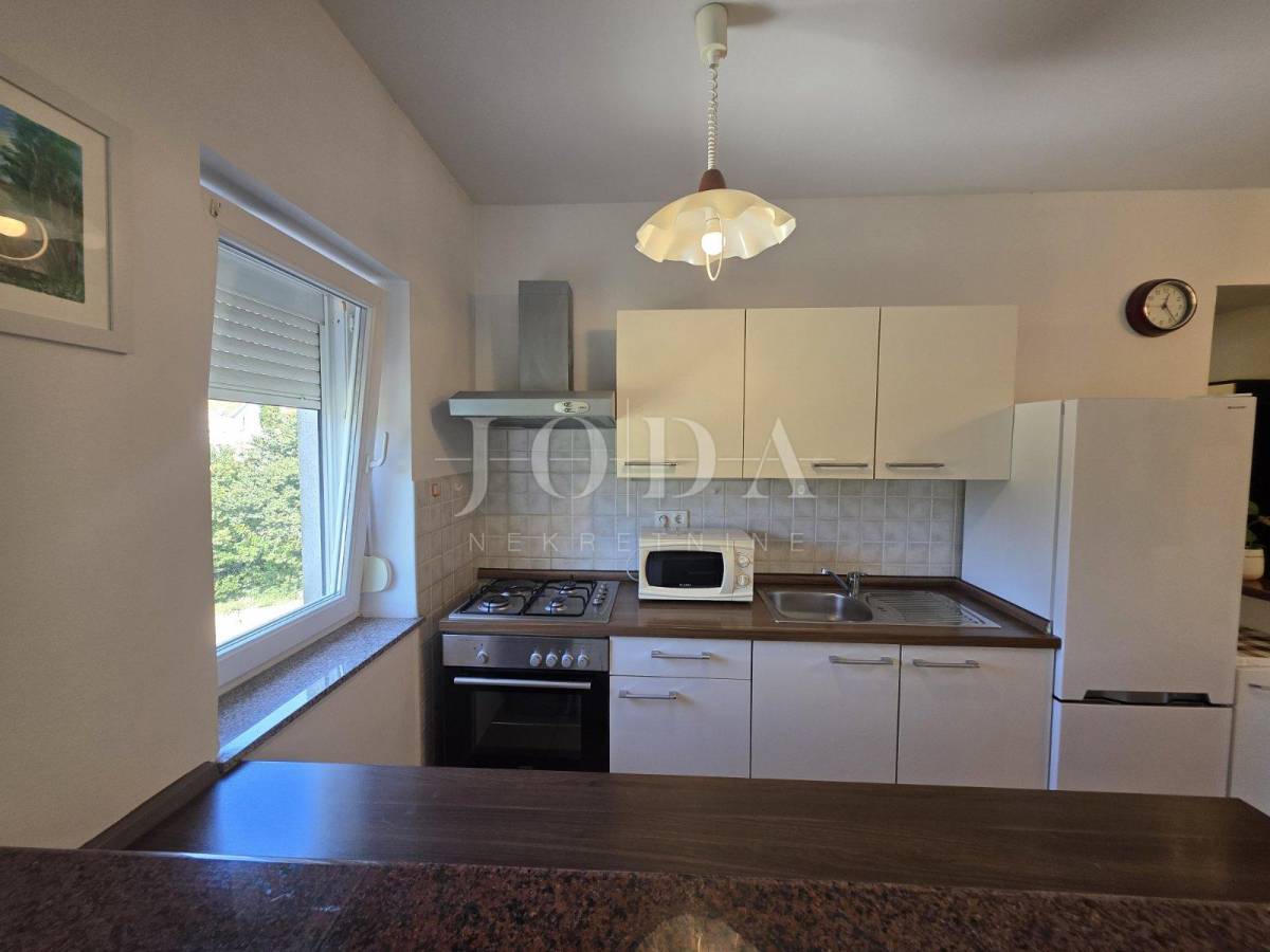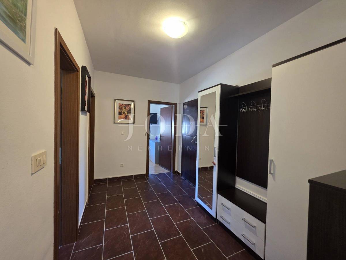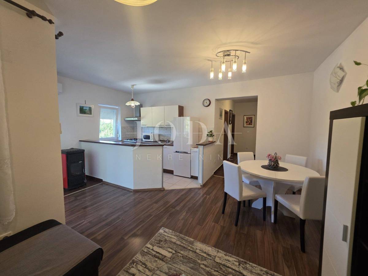 Prodajemo stan na mirnoj i lijepoj lokaciji, ali u blizini svih potrebnih sadržaja. Stan se nalazi na prvom katu stambene zgrade u nedaleko od prve plaže. Sastoji se od kuhinje sa blagovaonom, dnevnog boravka, hodnika, dvije spavaće sobe i loggie. Nekretnina je u poptunosti namještena i klimatizirana te se kao takva i prodaje. Idelana je za odmor i uživanje, ali i za cjelogodnišni boravak.