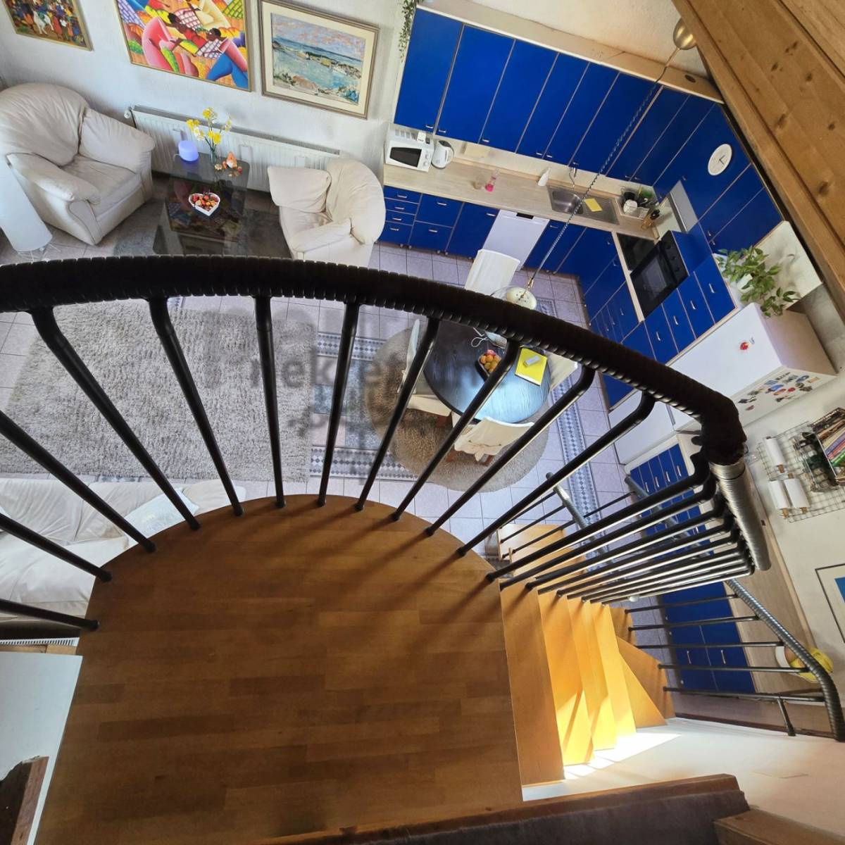 Posredujemo pri prodaji prostranog dvoetažnog stana na trećem katu manje uredne stambene zgrade (građene 1997. godine) u Novom Zagrebu na Kajzerici.