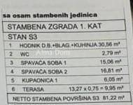 Novo u ponudi! Prodaje se stan S-3, površine 81.22 m² na 1 katu moderne zgrade s ukupno 8 stanova.