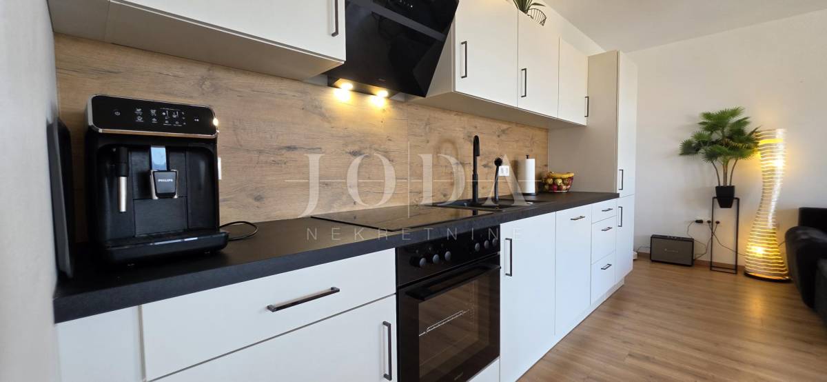 Unutrašnjost je uređena u modernom stilu s kombinacijom hrasta i crne boje. Kuhinja je potpuno opremljena svim uređajima (perilica posuđa, štednjak, pećnica, hladnjak), kupaonica je opremljena visokokvalitetnim pločicama i novim bojlerom, dok stan ima i smart-home klima uređaj upravljiv putem mobitela. Od namještaja se ističe ručno rađen hrastov stol, novi ormar u spavaćoj sobi te sigurnosna kamera.